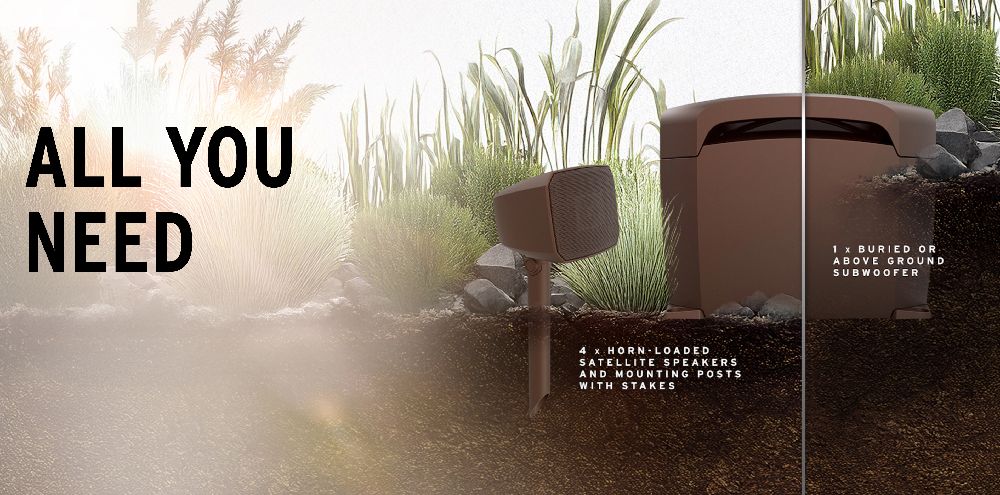 A one-box solution, Klipsch Courtyard comes complete with everything you need to power your patio party. The main kit includes four aimable Tractrix horn-loaded satellite speakers, a subwoofer, mounting posts with stakes, and more - to deliver amazing outdoor sound from your AVR’s zone 2. For a larger area, the Courtyard system is expandable up to eight satellite speakers and two subwoofers.