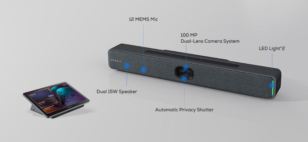Featuring 12 intelligent beam-forming microphones with an 8 m pickup range and dual 15W speakers equipped with quad bass units, this system delivers precise sound tracking, crystal-clear communication, and rich, balanced audio. It transforms any space into a professional meeting environment with exceptional clarity and immersive sound quality.