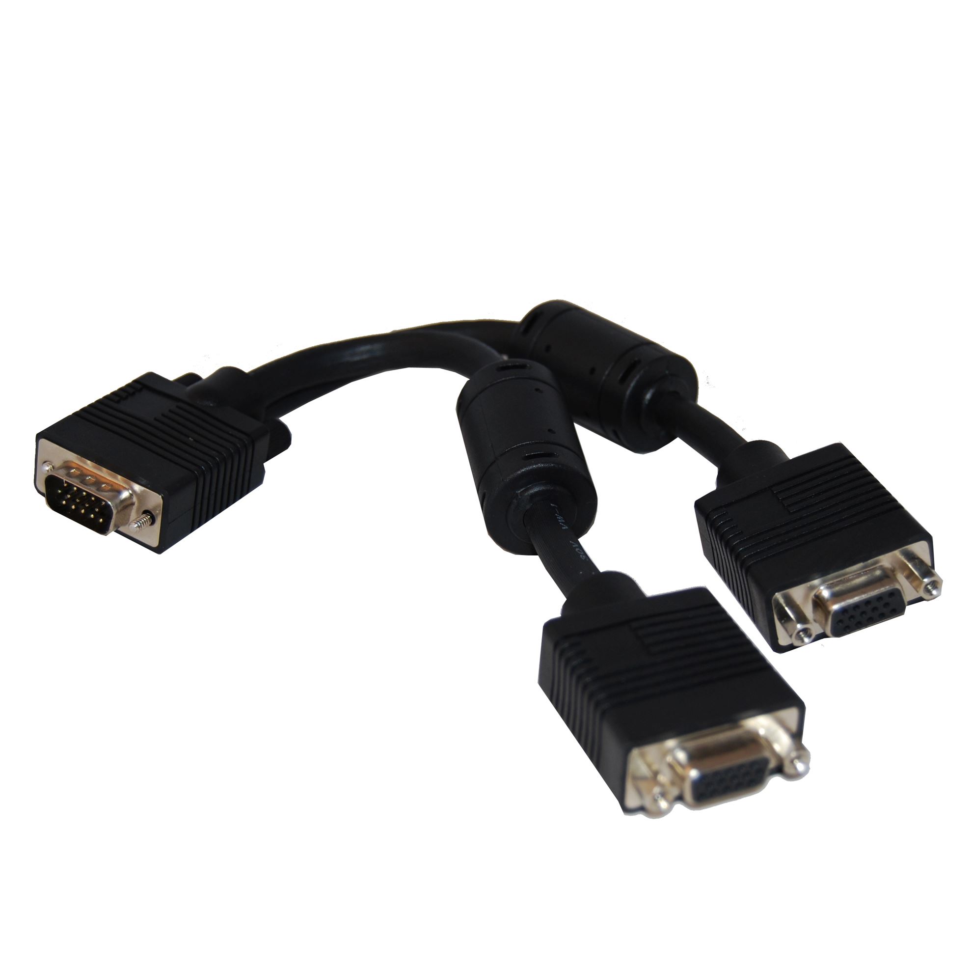 0.15m VGA Splitter Cable. (HD DB15M to 2x DB15F) Connect Dual VGA monitors