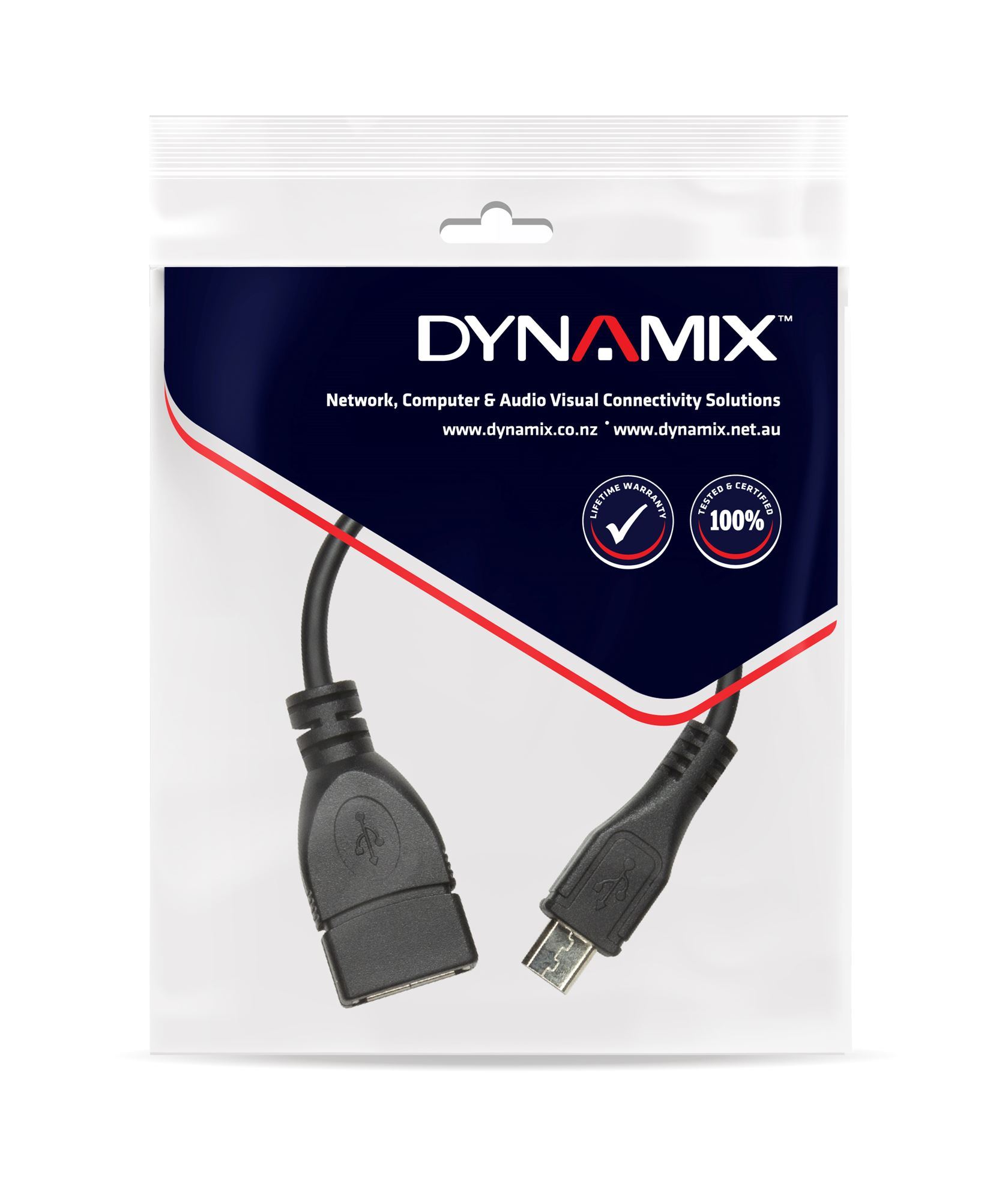 DYNAMIX 0.1m USB 2.0 Micro-B Male to USB-A Female Adapter. OTG compatible