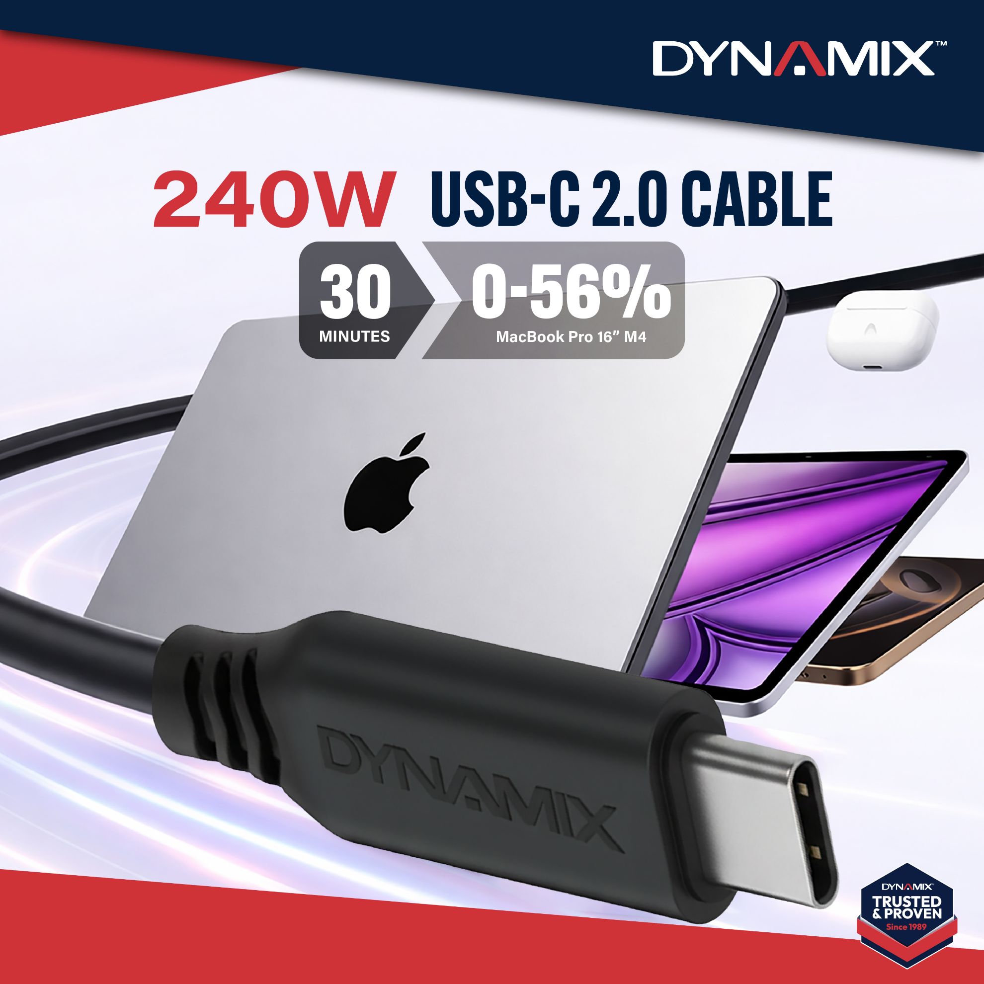The DYNAMIX U20 series is a USB 2.0 C Male to C Male cable designed for high-performance charging & reliable data transfer. Supporting up to 240W Power Delivery, this cable is ideal for powering laptops, docking stations, & other high-demand USB-C devices. Constructed with tinned copper conductors, aluminium foil shielding, & braided protection, it delivers stable signal transmission & enhanced durability. Premium gold-plated connectors with nickel plated shell & a reinforced PVC jacket provide long-lasting performance, while compliance with UL, RoHS, REACH, & TSCA standards ensures safety & quality. Available in multiple lengths, the U20 series is engineered for both commercial & retail environments.