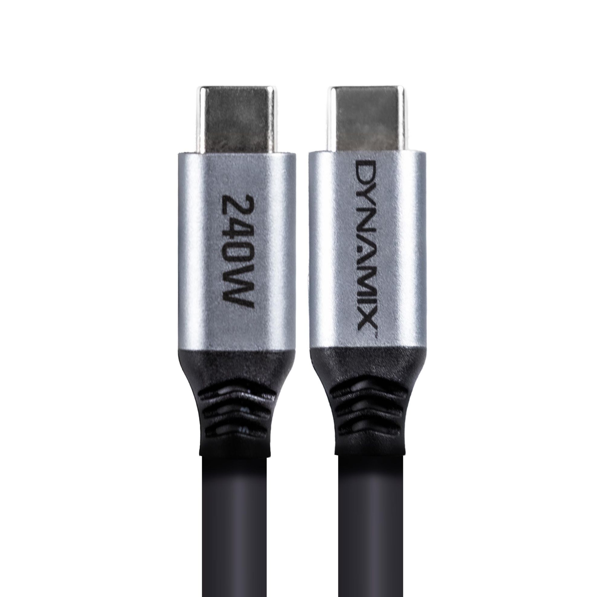DYNAMIX Standard and Premium 240W PD USB-C to USB-C High-Speed Data Sync & Charge Cable. The DYNAMIX USB-C cable supports up to 480Mbps data transfer & up to 20V/5A power - more than enough to charge large-capacity mobile devices, such as the MacBook Pro. It also connects smartphones, computers, wall chargers & other USB-C devices.