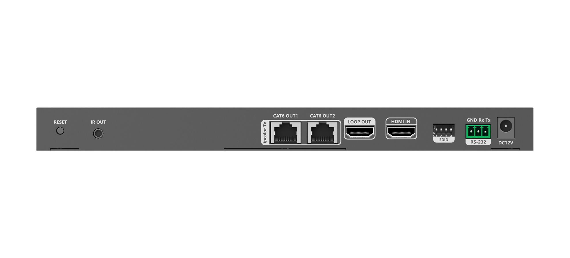 1-In-2-Out 4K@30Hz HDMI Extender. Distributes 1 HDMI input signal to 2 identical signal outputs, extending these signals up to 70m. Supports 4K@60Hz resolution, IR passbacks, RS-232 control and other functions.