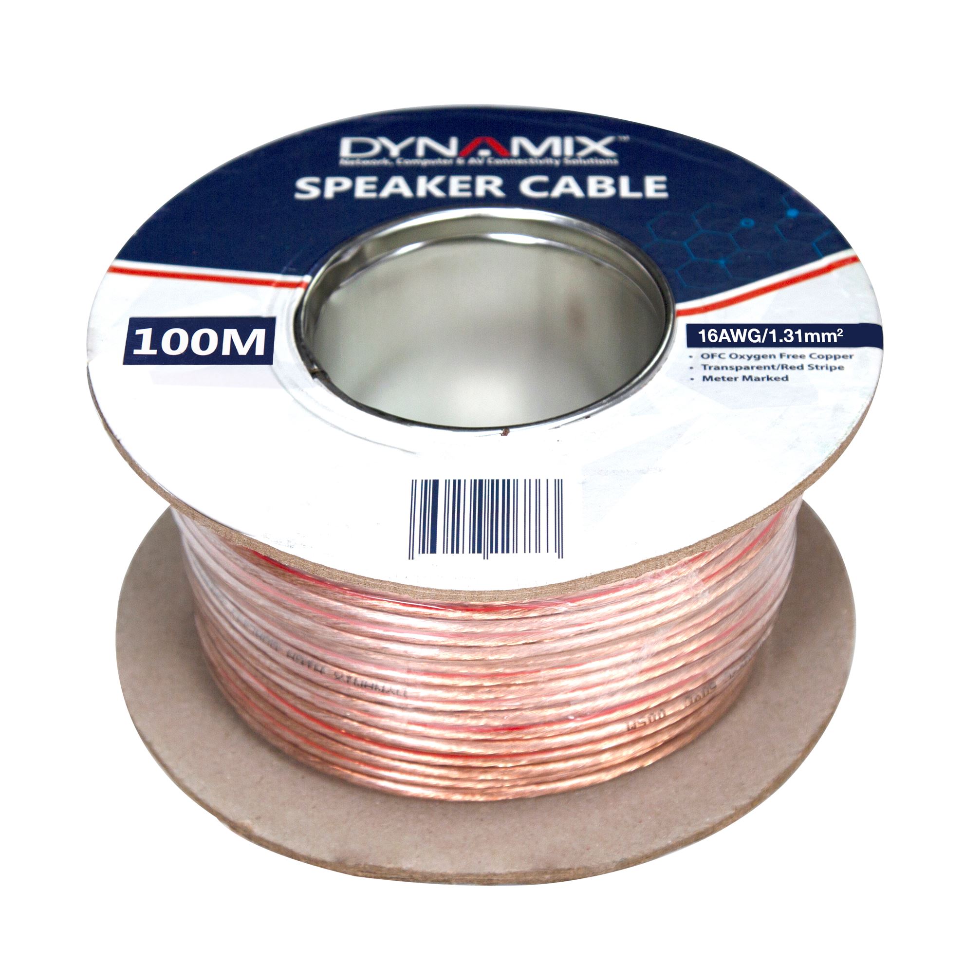 DYNAMIX 100m 16AWG/1.31mm Speaker Cable, OFC 25/025BCx2C, Clear PVC Insulation, OD: 4.0x 8.0mm. Meter Marked