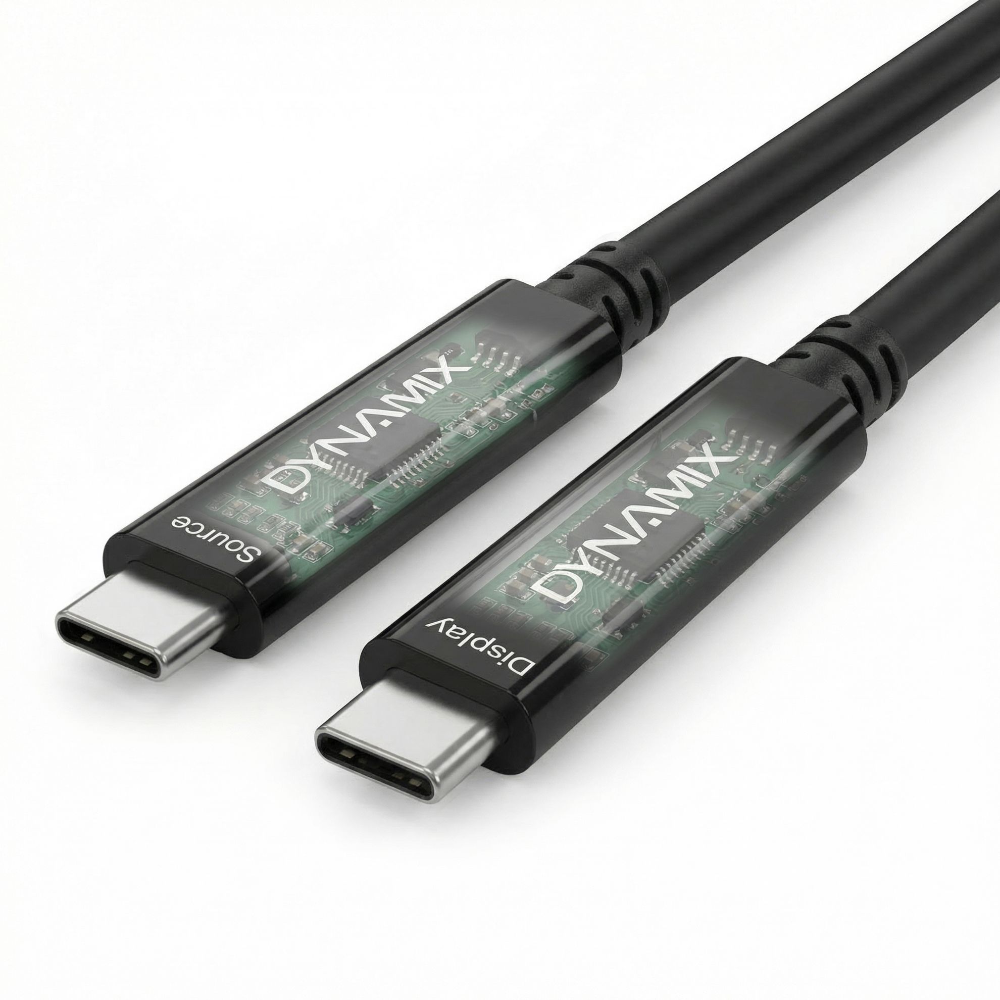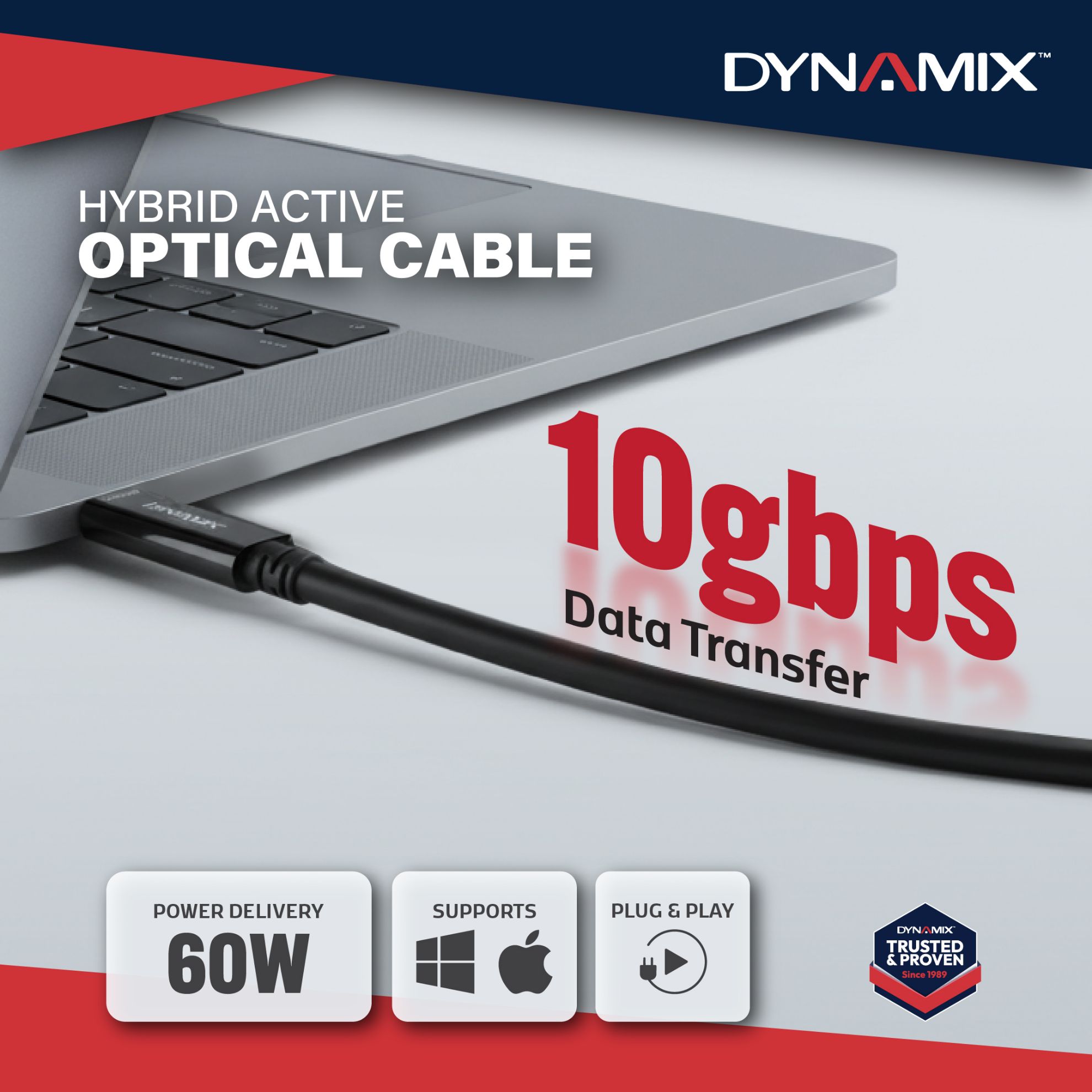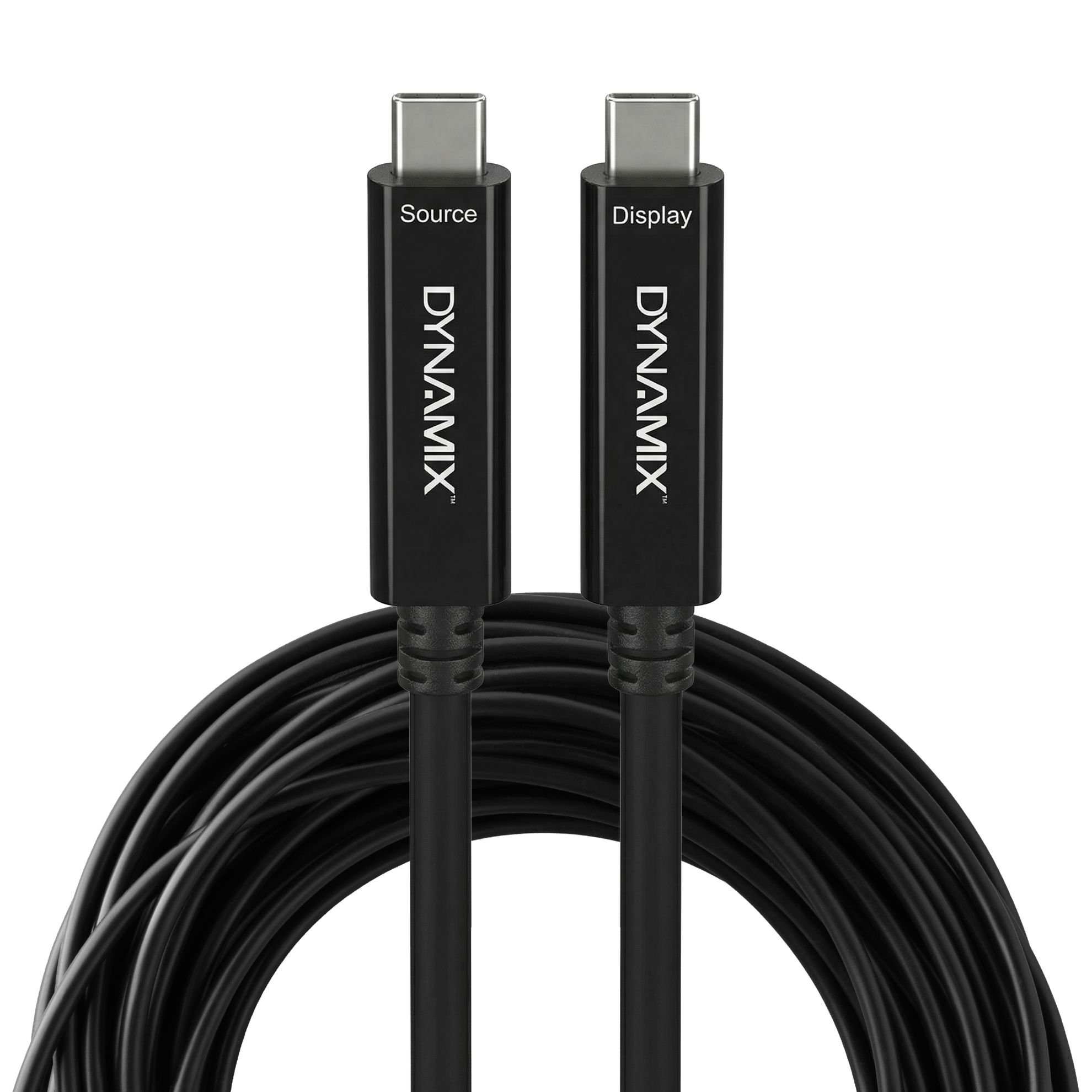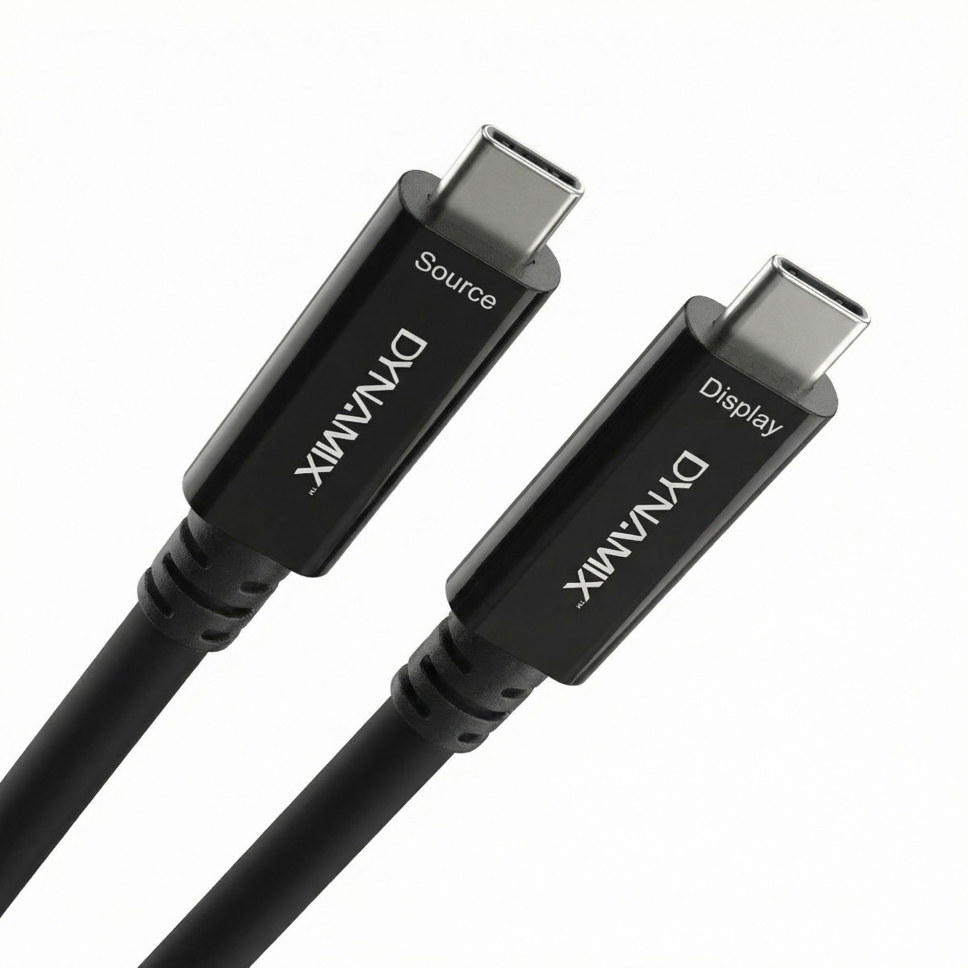 The DYNAMIX C-U32-LLF-CC is a full-featured hybrid USB Type-C Active Optical Cable (AOC) designed to deliver high-speed data, DisplayPort video, & Power Delivery through a single USB-C connection. By utilizing optical fiber for high-speed signal transmission & copper conductors for power delivery, it overcomes the bandwidth & distance limitations of traditional copper cables while maintaining excellent signal integrity.