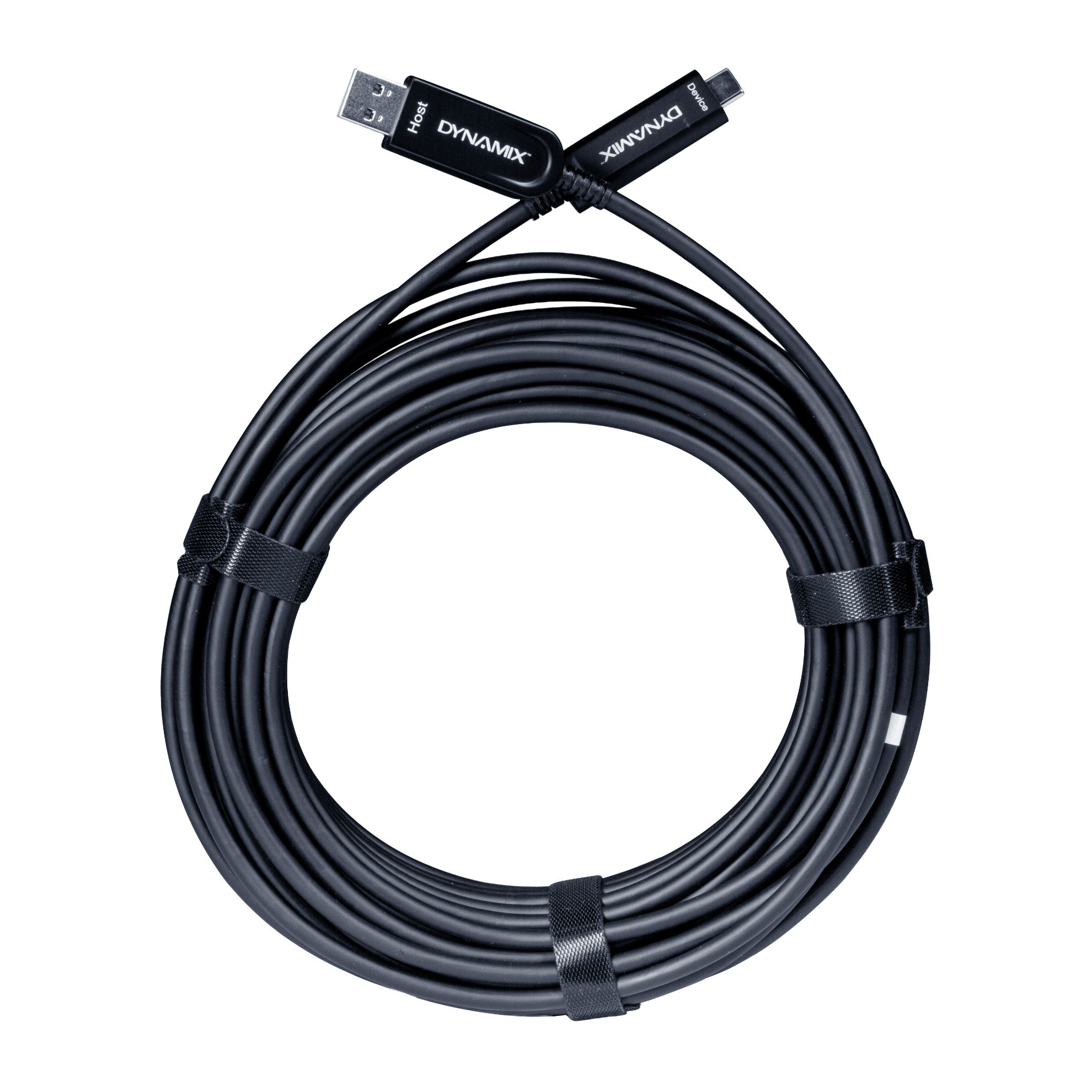 The DYNAMIX USB 3.2 AOC (Data Only) combines fibre optics for high-speed data and copper conductors for power delivery. Supporting lengths up to 15m without relay devices, it offers reliable performance where on-site power is unavailable. Ideal for cameras, computers, tablets, smartphones, hard drives, & other long-distance applications.
