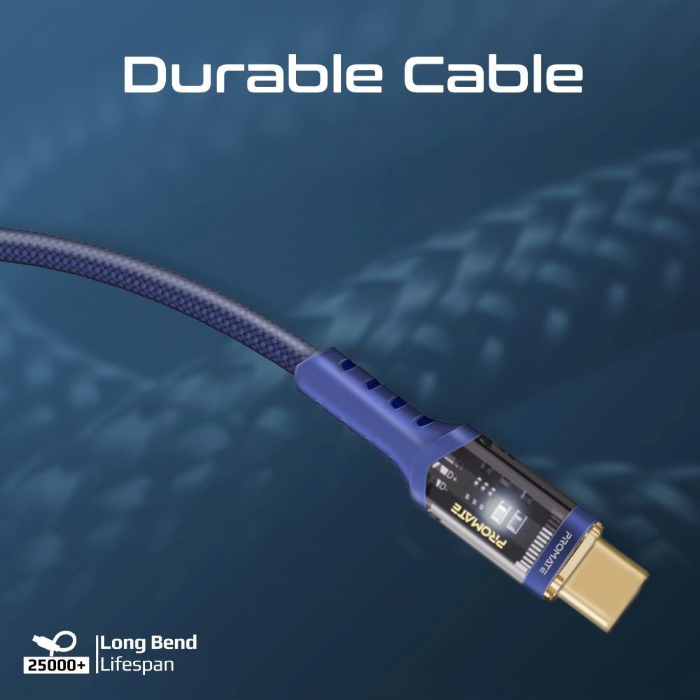 The Promate LucidLine-CC120 is Bend tested to withstand 25000+ bends. This nylon braided USB-C™ cable is designed to handle maximum stress and strain. No need to worry about broken cables that don’t charge properly.
