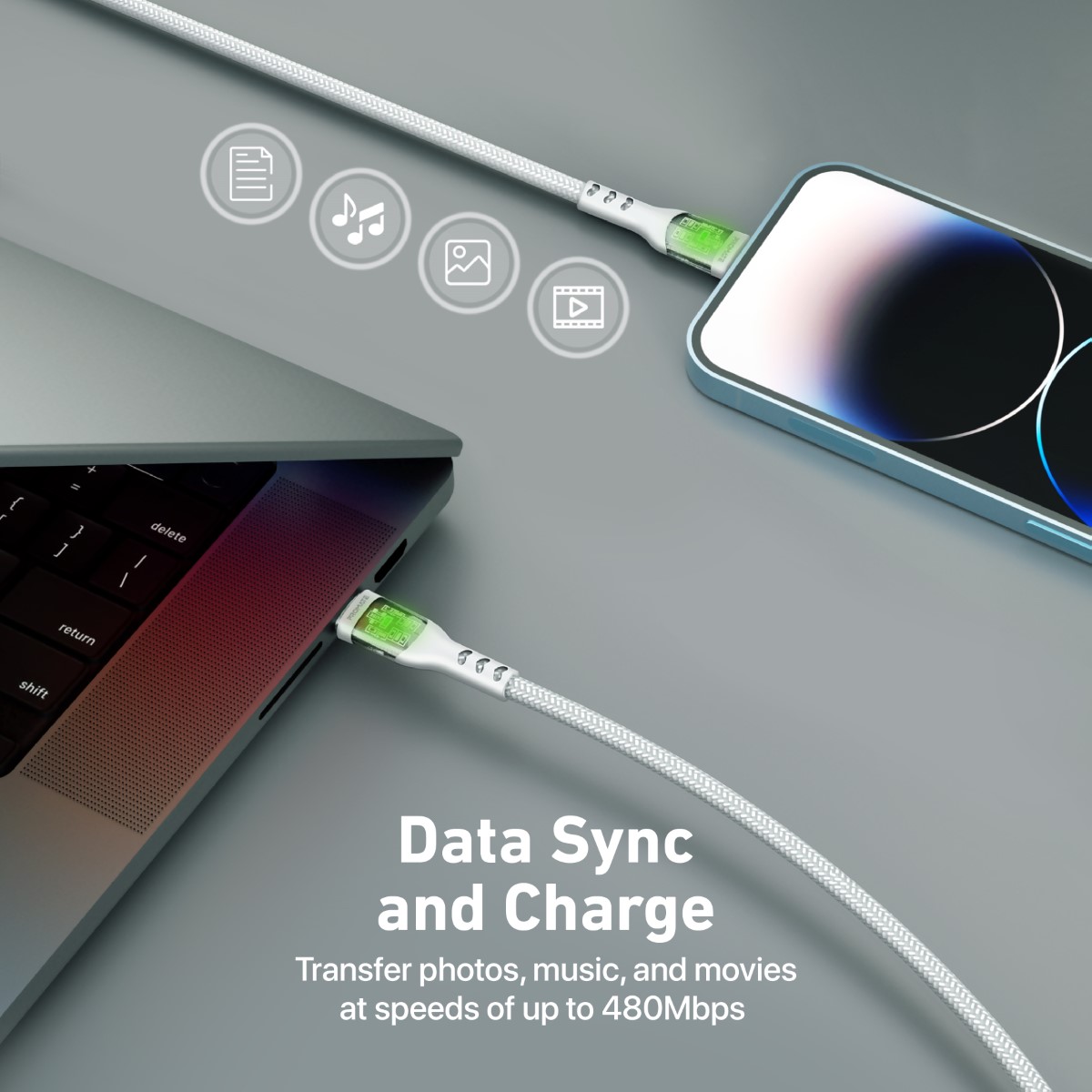 TransLine-Ci is a uniquely stylish USB-C to Lightning cable designed to work flawlessly with your Apple devices. No more worrying about broken wires, the tough nylon braided exterior and reinforced transparent Shells with LED lights, offer higher durability and a one-of-a-kind charging experience. With a staggering 27W Power Delivery TransLine-Ci can charge your compatible devices at lightning speeds. TransLine-Ci also offers data transfer of 480Mbps thus allowing you to sync and charge simultaneously.