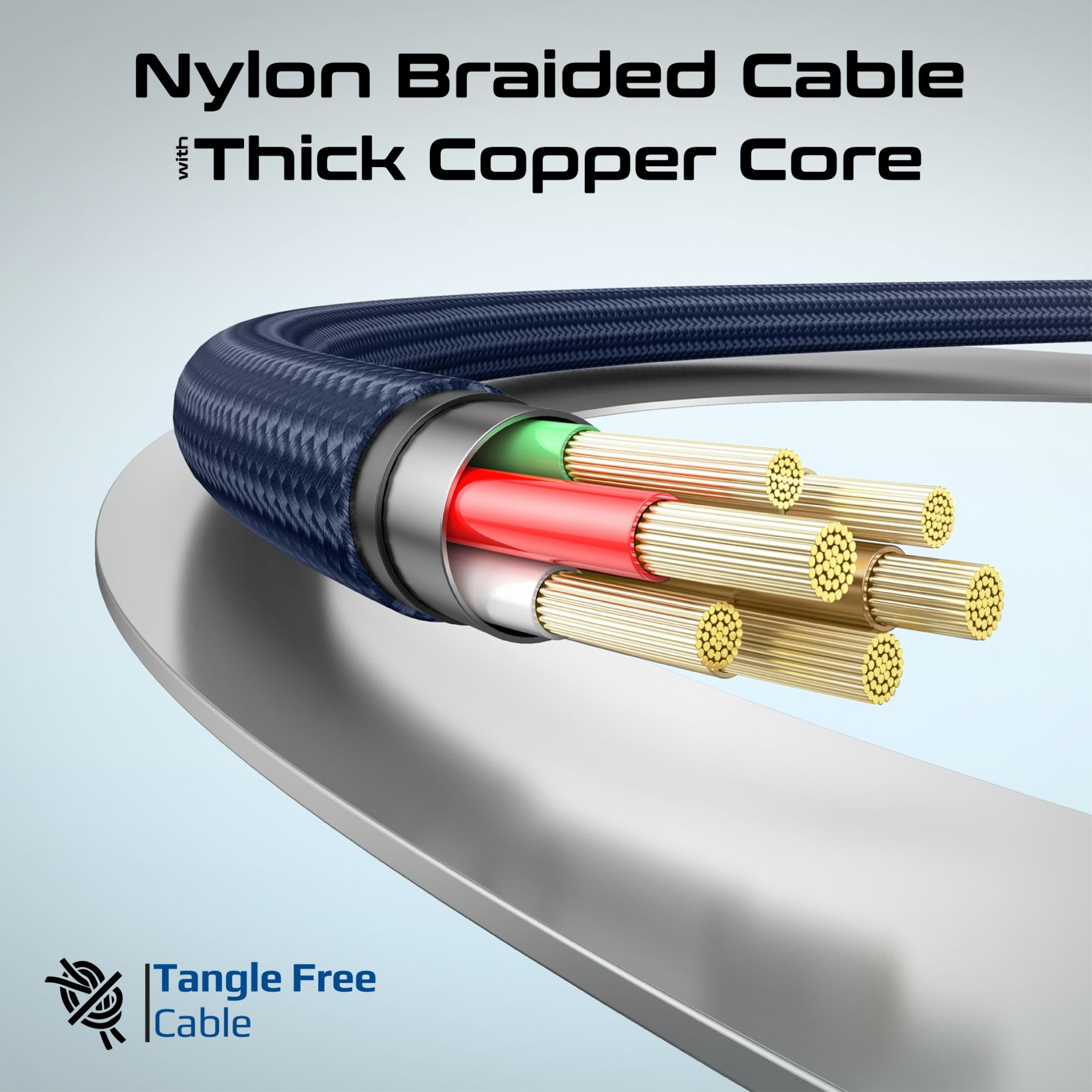 - Durable Nylon-Braided Cable with Thick Copper Core