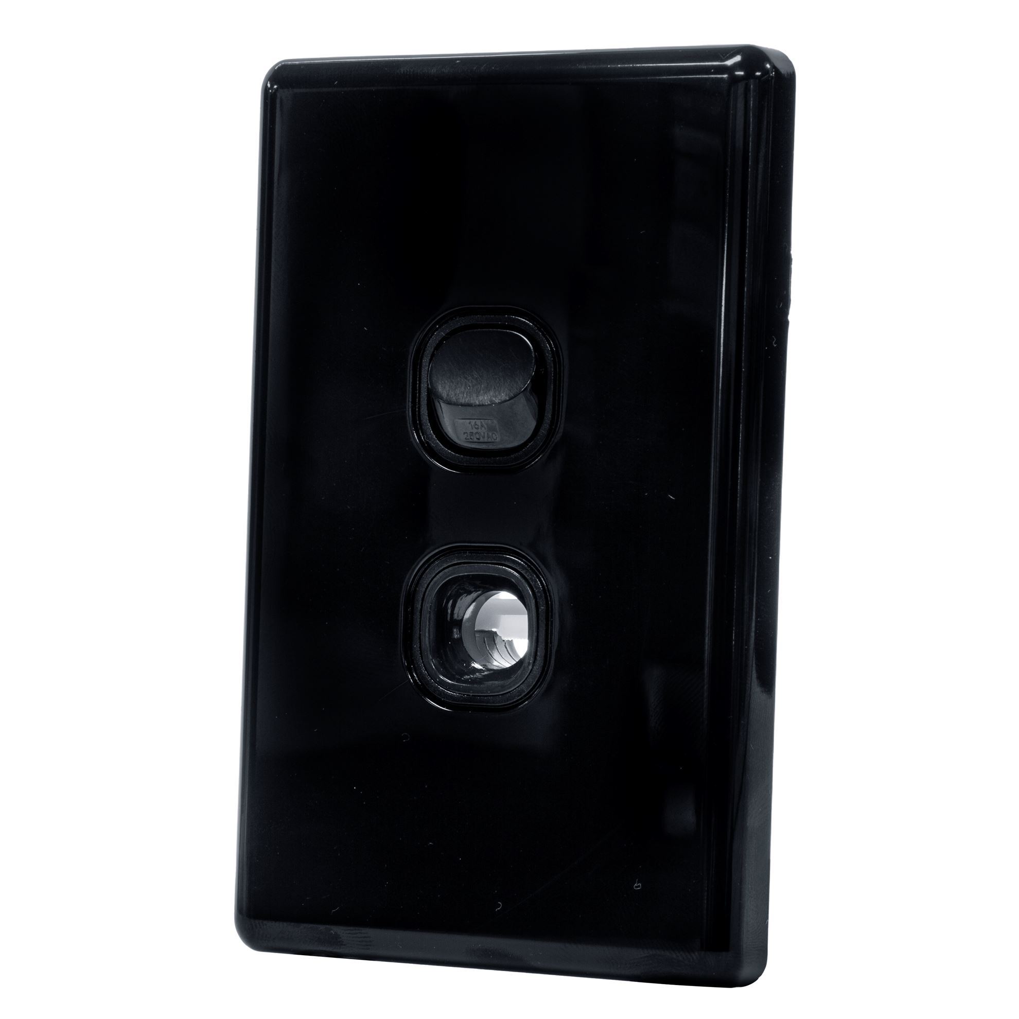 16A 2-Way Vertical 2 Gang PCU Switch Black