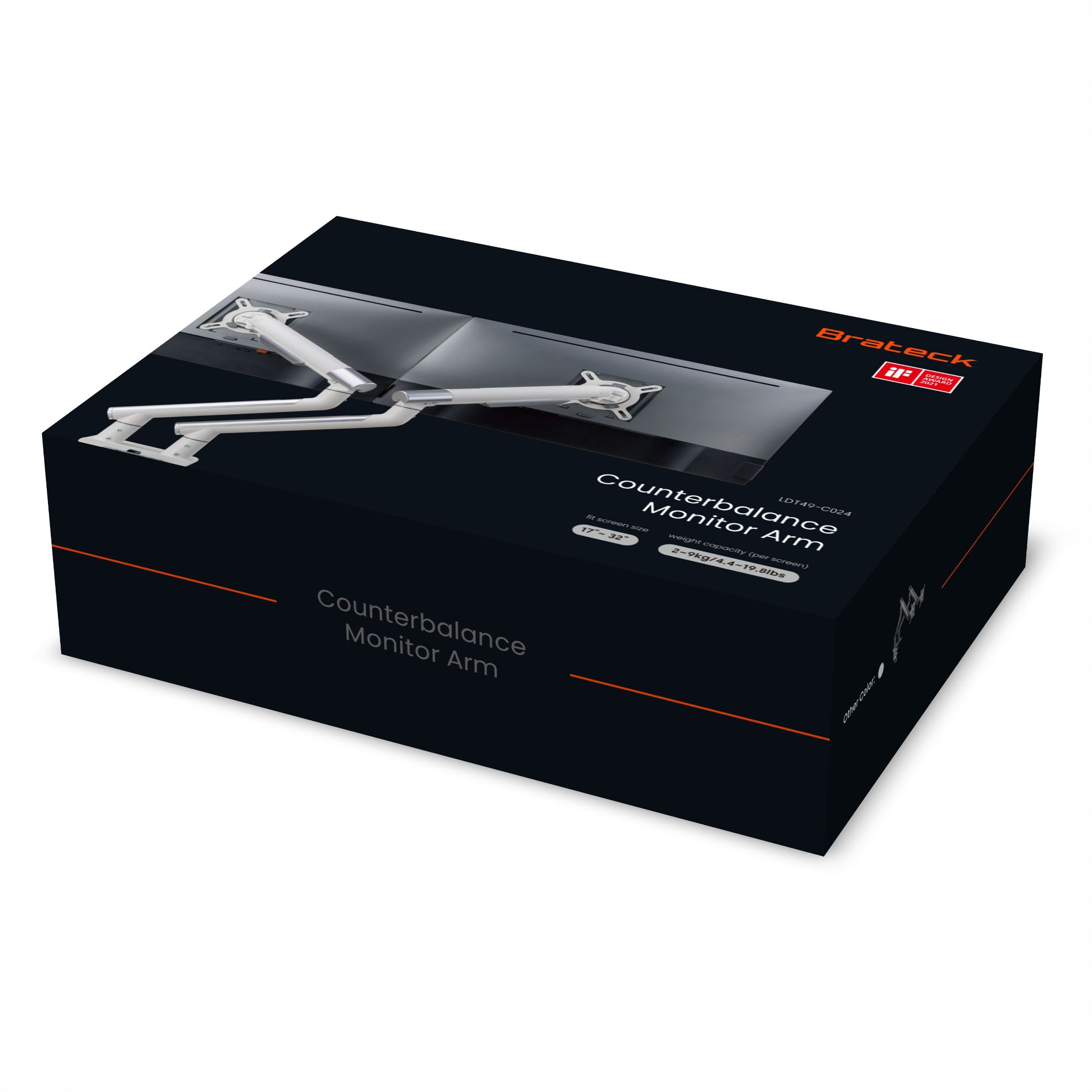Featuring slim arms and outstanding flexibility, the LDT49-C024 Premium Aluminium Monitor Arm combines a great look and smooth movement, resulting in a better work experience. The internal spring mechanism provides safe and secure movements. This monitor arm is ideal for applications requiring frequent display adjustments, including financial analysis, creative work and more. Perfect for where frequent display adjustment is required. A quick-release VESA plate allows for effortless monitor installation and removal. A visible tension indicator assists with adjusting multiple arms and displays the correct balance. Built-in 180° rotation-stop prevents interference with the wall or partitions. The cable management conceals the wires for a clutter-free appearance.