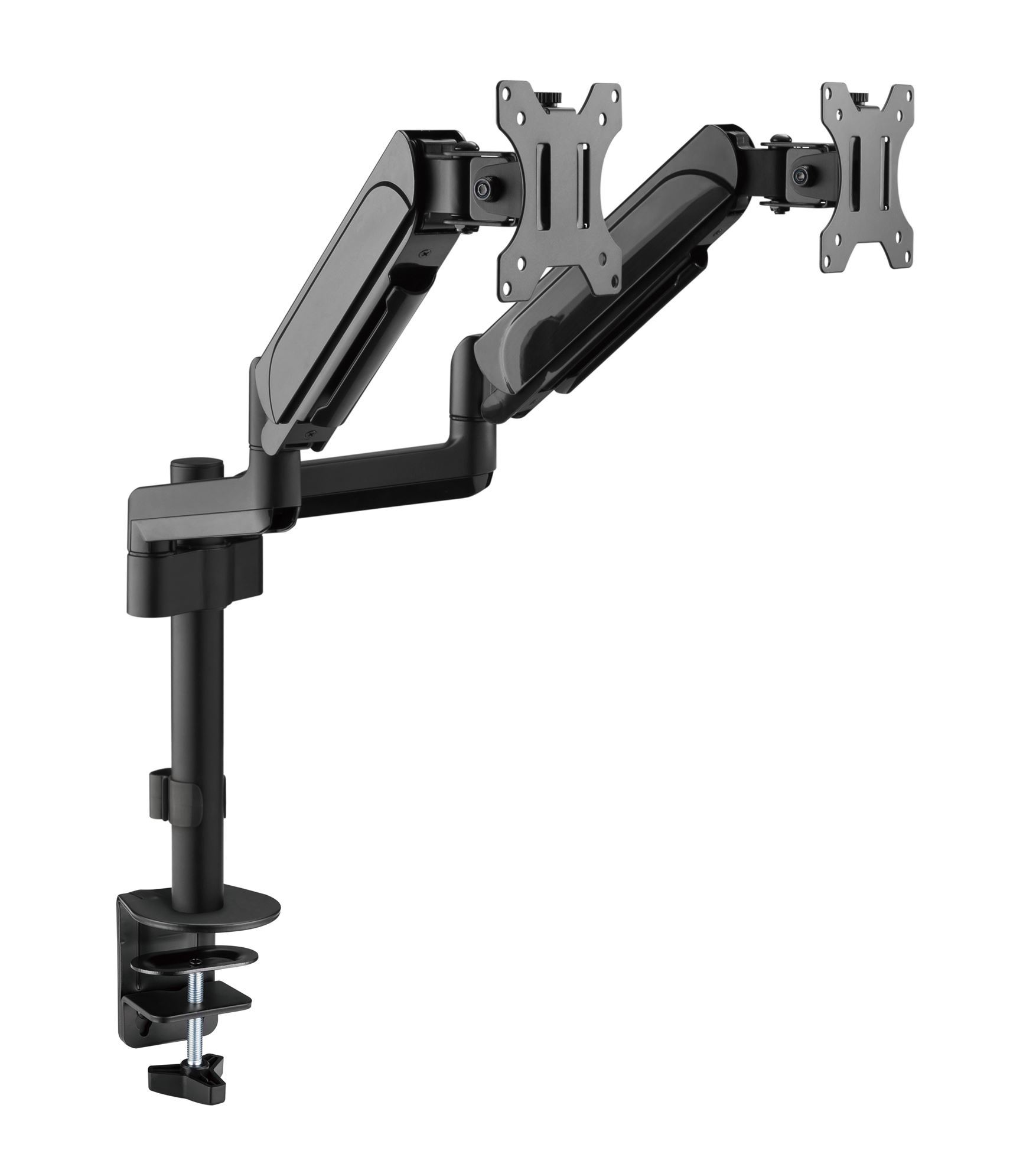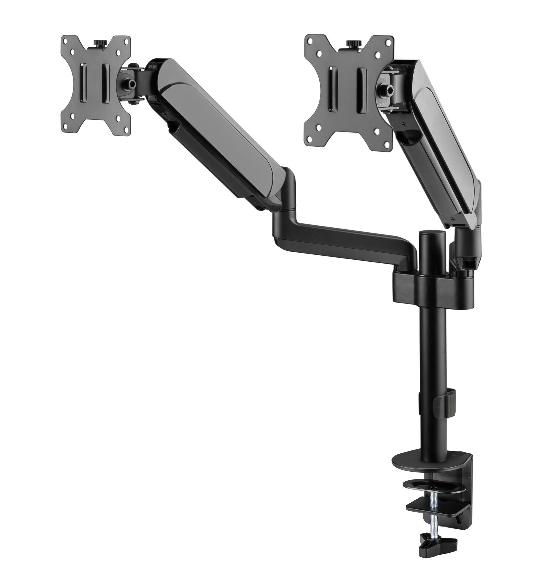 Home > Brackets & Display Solutions > Desk Mount Monitor Brackets > Dual Monitor Desk Mnt Bracket > 17''-32'' Pole-Mounted Gas Spring Dual Monitor Desk Mount Bracket w/ Detachable Plate