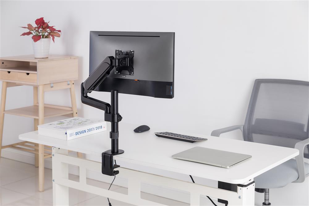 With robust construction and effortless adjustments, the LDT48-C012 Pole-Mounted Gas Spring Monitor Arm firmly holds a display above the work surface, freeing-up valuable desk space. Ideal for organizing and optimizing any home or office work area. An internal gas spring mechanism provides smooth and quick adjustments for the most comfortable viewing angles. A quick-release VESA plate makes monitor installation or removal fast and easy. Built-in cable management keeps wires hidden and arranged for a cleaner look. Best of all, the LDT48-C012 is competitively priced to build sales and profits for your business.