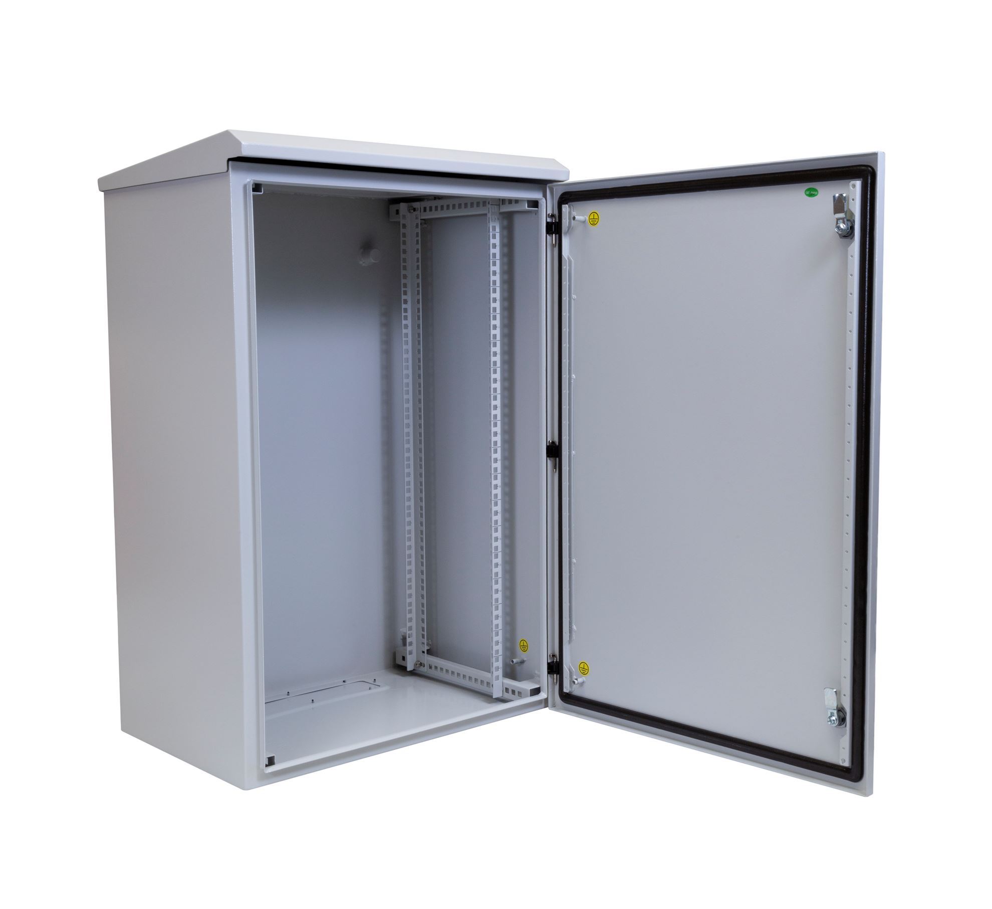 Our DYNAMIX IP65 outdoor wall mounted cabinets are an ideal solution to protect sensitive electronic networking equipment from harsh and demanding environments specifically where equipment may be exposed to dust and water. Constructed from highly durable material the DYNAMIX wall mount cabinets come fully assembled and supplied complete including rain hood, detachable rear wall mount bracket, dual locking system, and grounding pin. The cabinets are available in a wide variety of sizes to suit most projects.