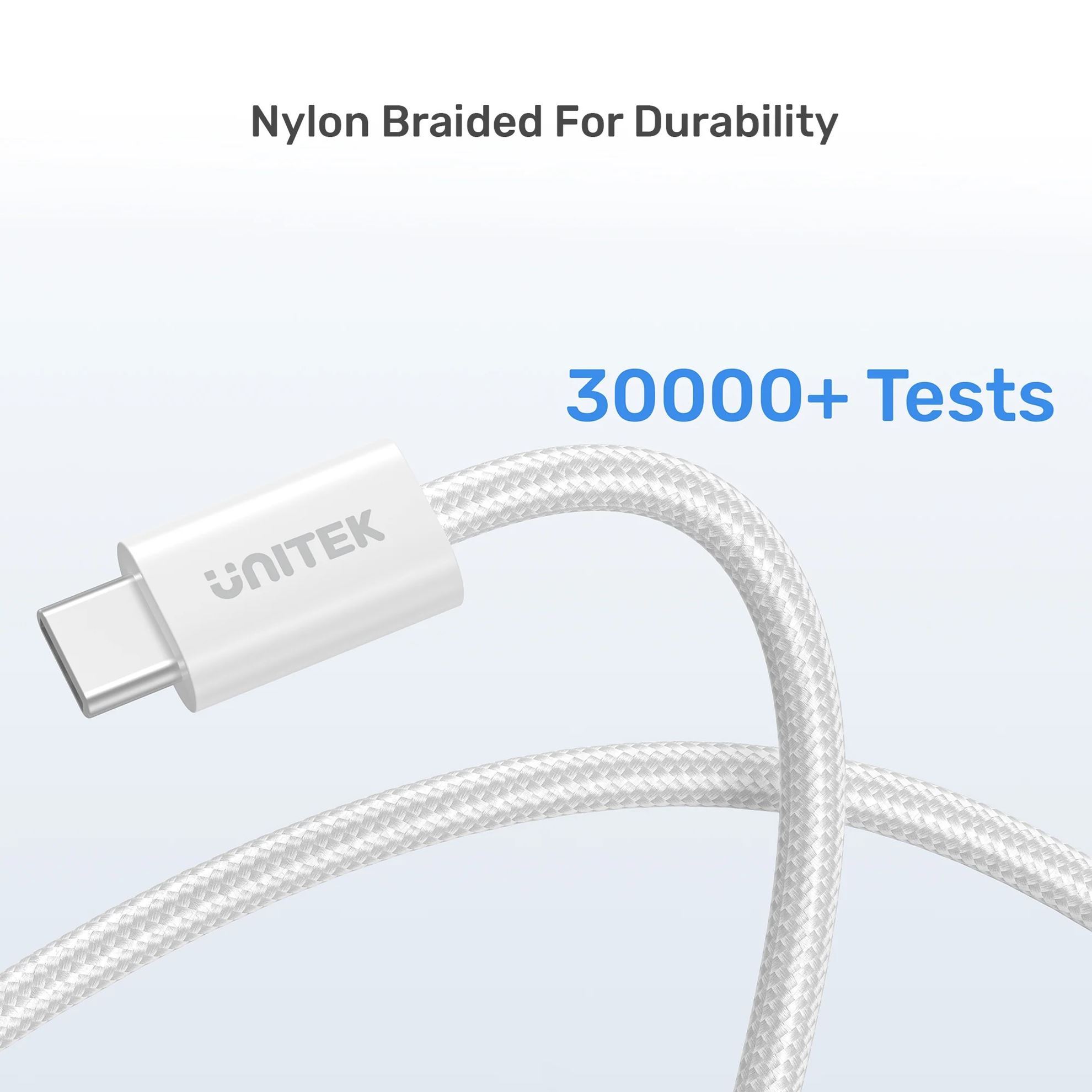 UNITEK USB-C to USB-C cable charges 52% faster than a 60W USB-C cable. It has a 100W (20V 5A) output. Users can charge laptops like the MacBook Pro 13‘’ from 0% to 39% in 30 minutes or an iPhone 15 from 0% to 60% in just 30 minutes.