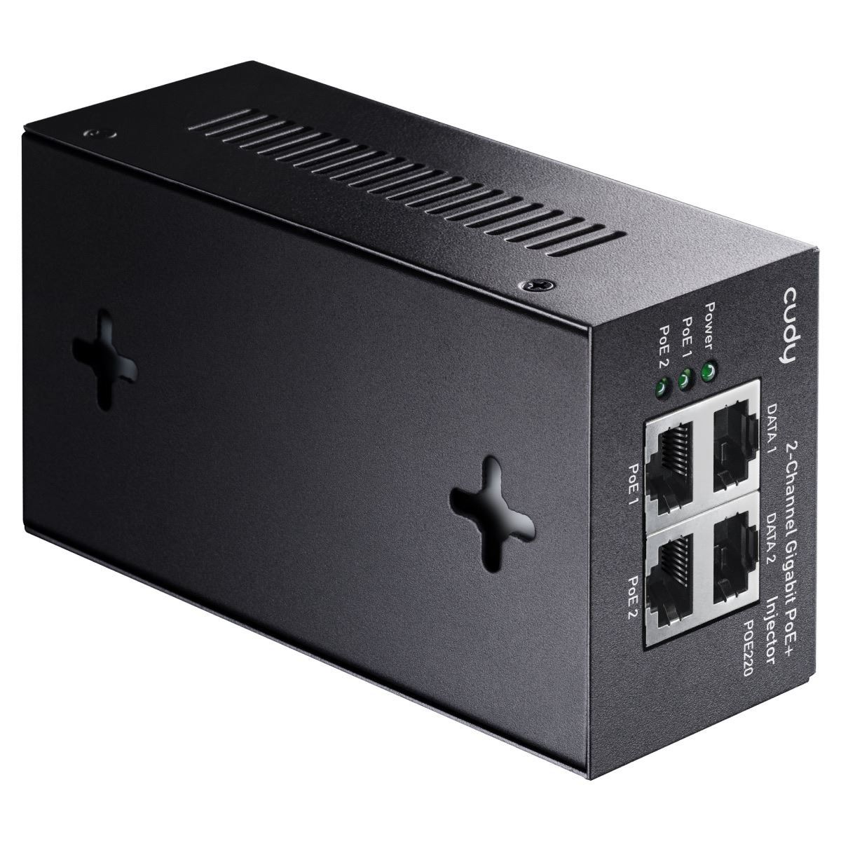 2-Channel 30W Gigabit PoE+/PoE Injector 2x 30W Power Supply 802.3at
