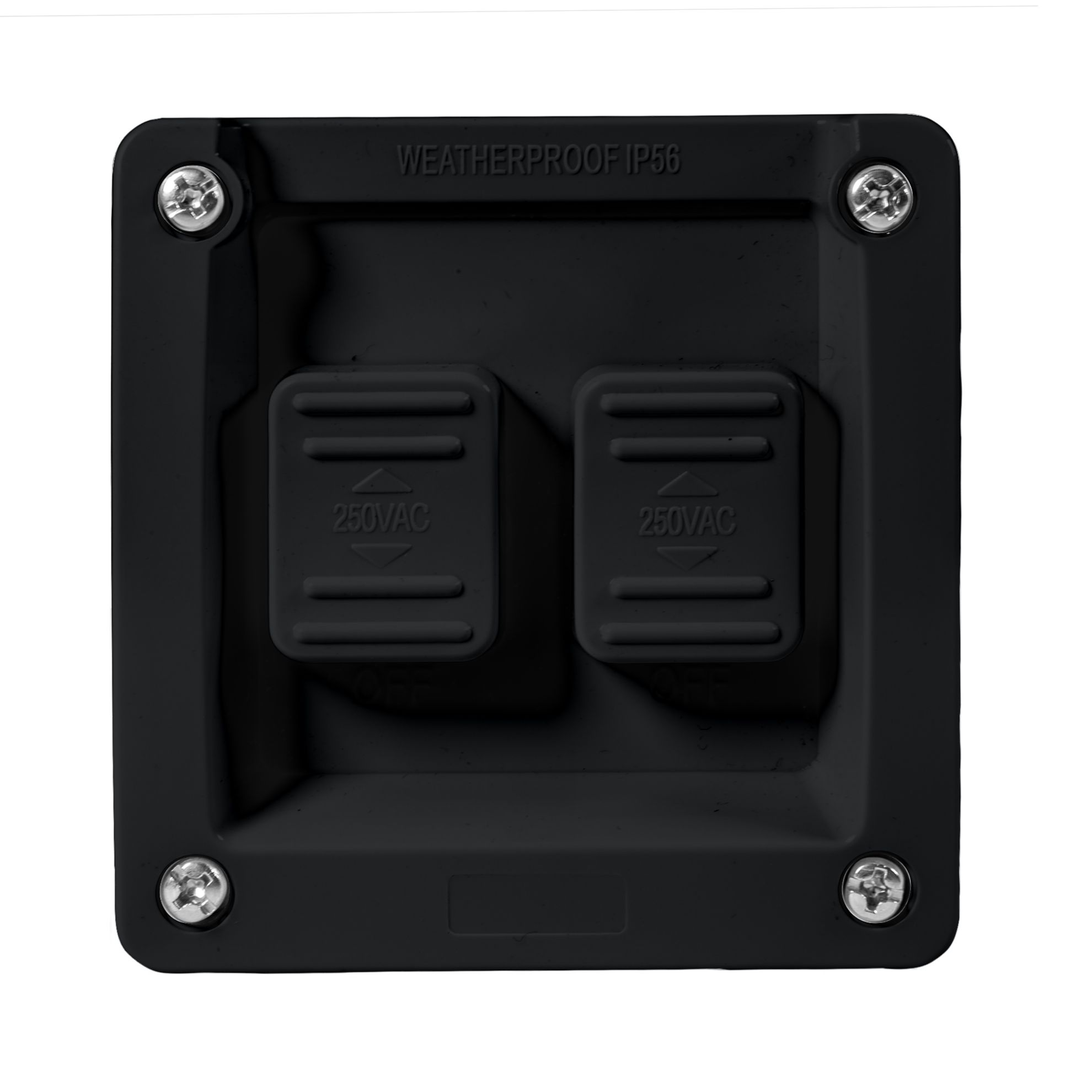 TRADESAVE 2 Gang Weatherproof Black Switch, 15A, IP66, Grey Heavy Duty Industrial Grade Virgin Plastic UV Stabilised, Surface Mounted.
