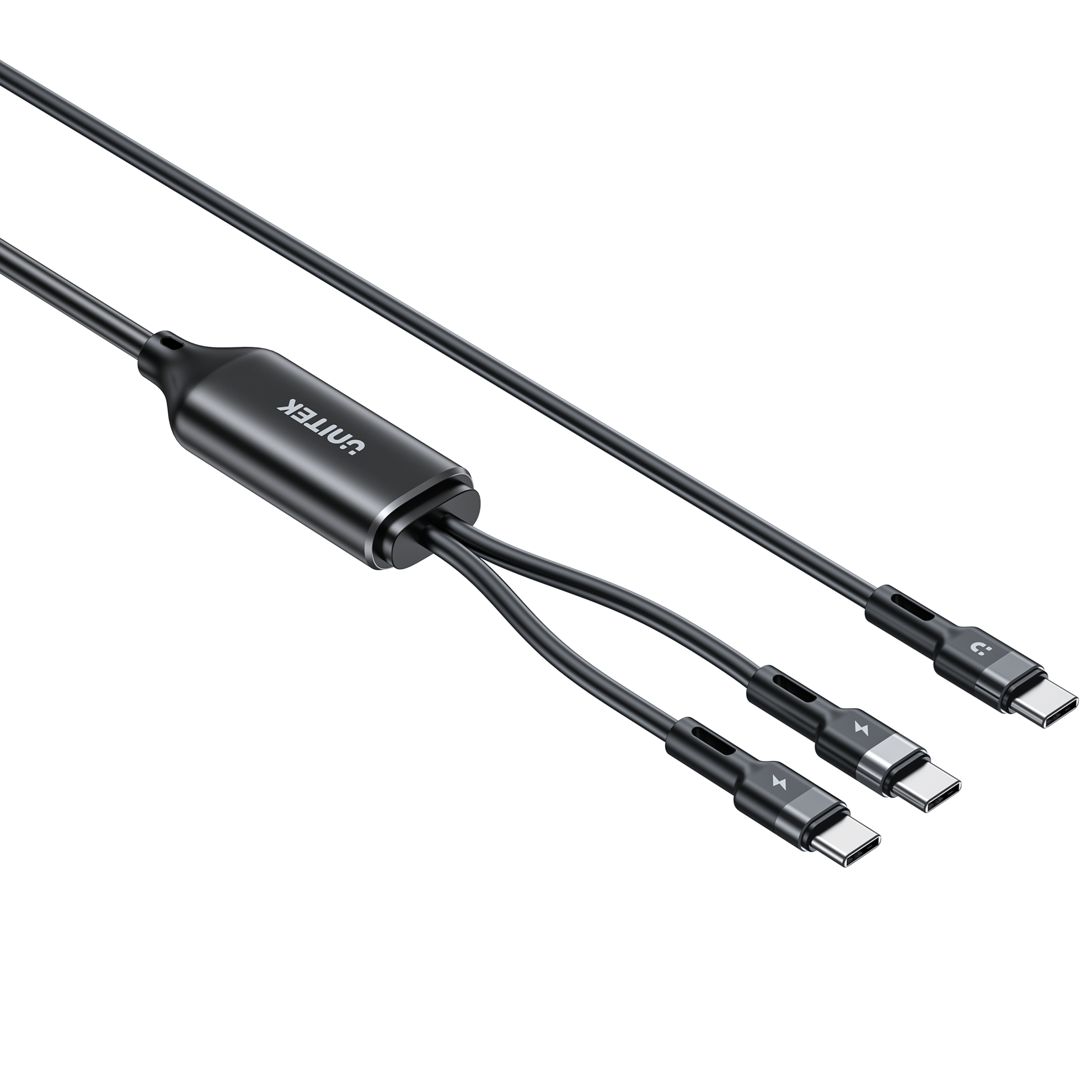 Get the UNITEK PD100W 2-in-1 USB-C Cable and enjoy the convenience of simultaneous charging on the go! Effortlessly power up two Type-C devices at once, making it perfect for school, home, work, or travel.