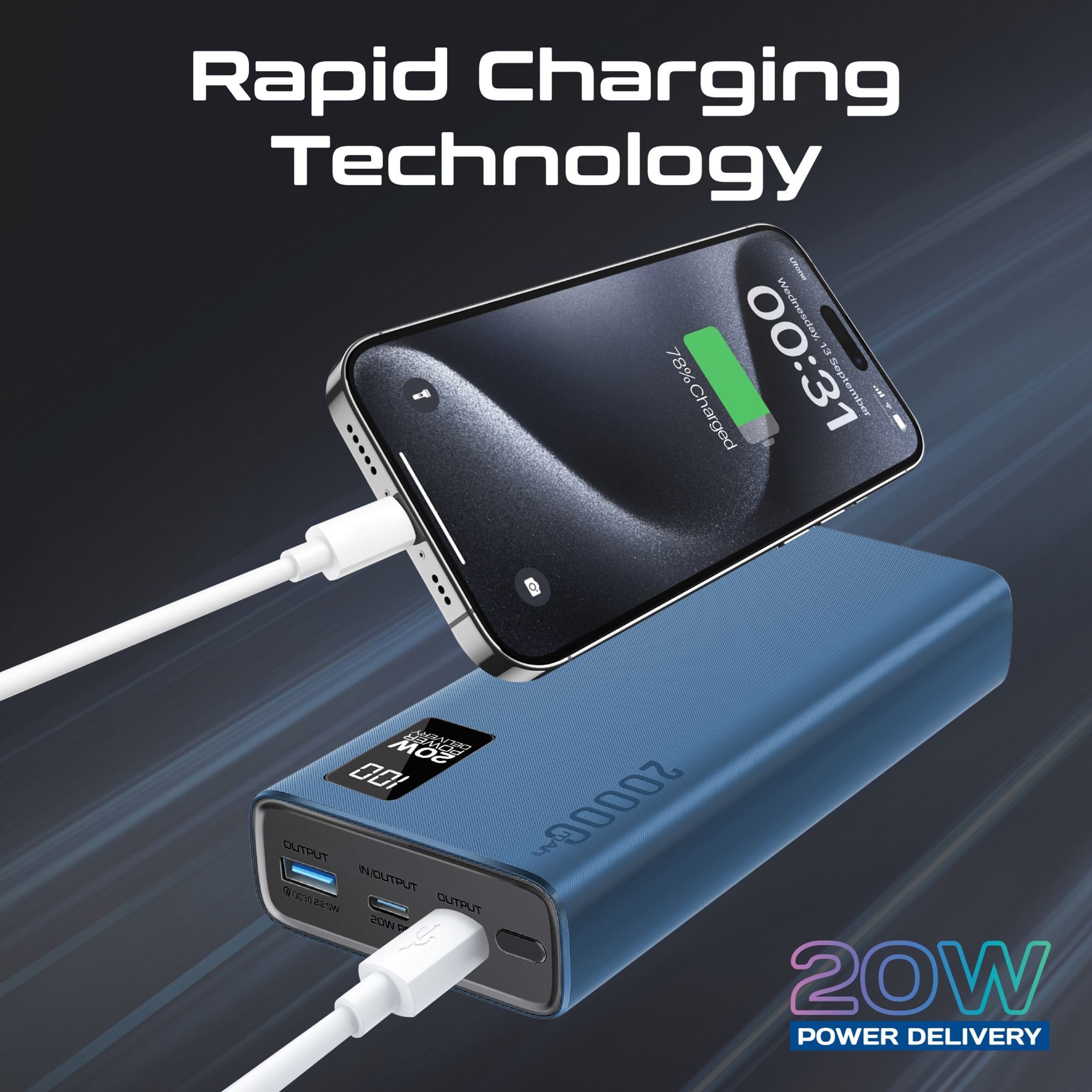 Bolt-20PD is The Ultimate Power Solution for Every Journey! Unleash boundless energy with a high-capacity 20000mAh Li-Polymer Battery, accompanied by three intelligent USB ports for diverse charging needs. Harness rapid charging capabilities through the 20W USB-C2 In/Out Port, And two output ports, 20W USB-C1 and USB-A 22.5W QC 3.0, while an intuitive Smart LCD Display keeps you informed of battery status. Compact and portable, Bolt-20PD ensures uninterrupted power on the move, fortified with safeguards against overcharging and overheating. Elevate your adventures with Bolt-20PD, your steadfast ally in every pursuit.