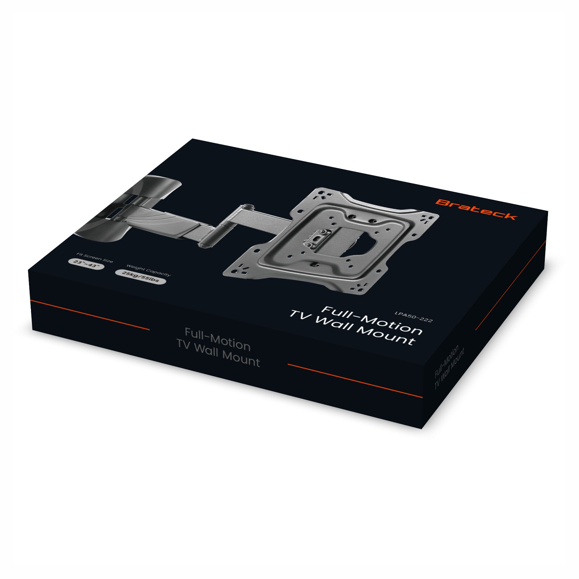 The LPA50-222 is a full-motion wall mount for most 23''~42'' LED, LCD flat panel TVs up to 35kg/77lbs. The arm can be stretched up to 400mm for a full range of movement to perfectly position your screen display - swivel up to 90° left or right and -15°~+5° tilt. This pre-assembled arm comes complete with integrated cable management and decorative covers to ensure an elegant and tidy look. Its built-in level adjustment offers 3° clockwise and counterclockwise turning to ensure it is perfectly level. Compatible with VESA hole up to 200x200.