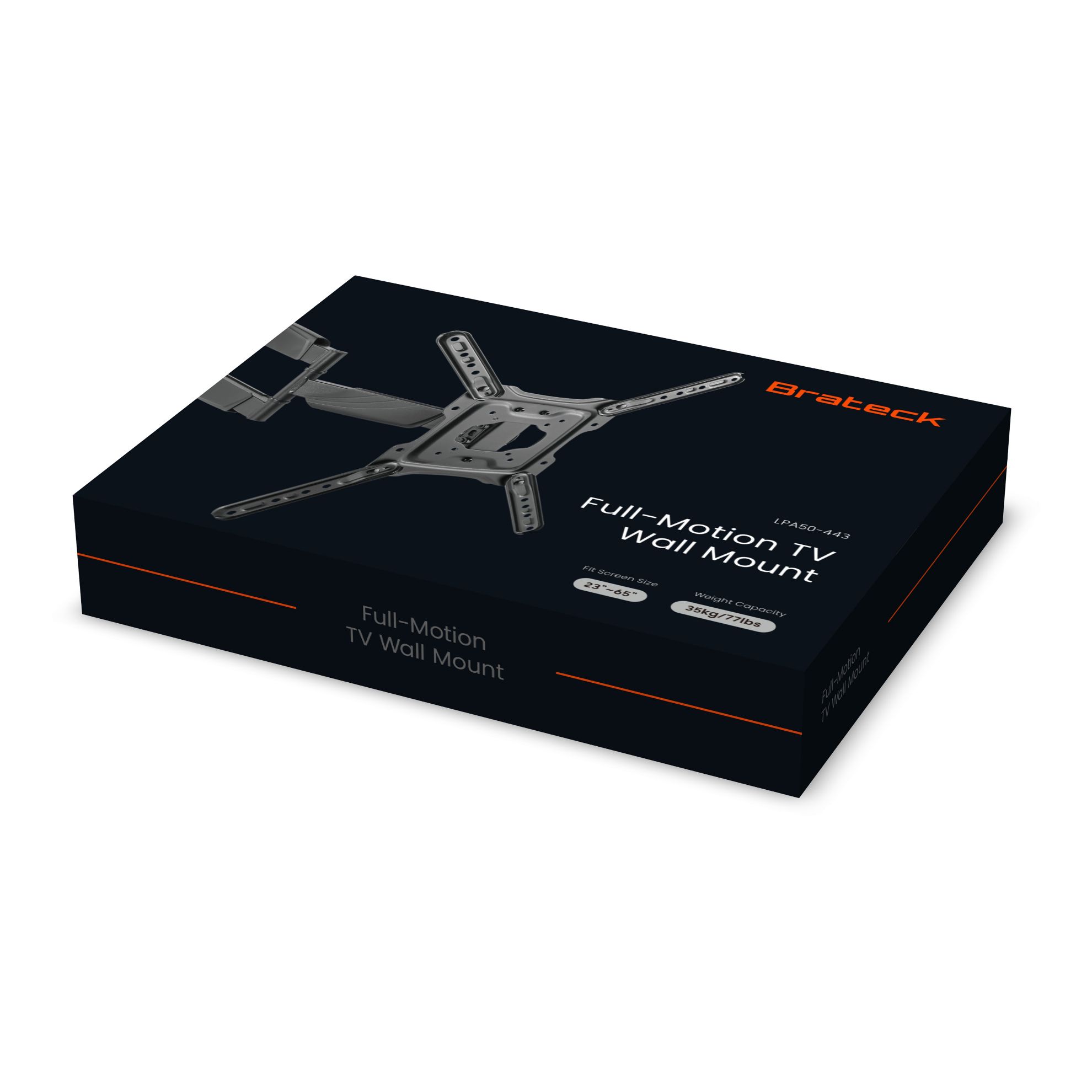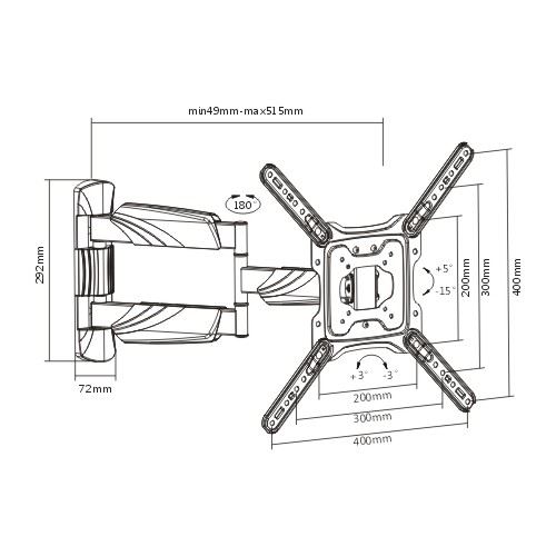 The LPA50-443 is a full-motion wall mount for most 23''-55'' LED, LCD flat panel TVs up to 35kg/77lbs. The arm can be stretched up to 515mm for a full range of movement to perfectly position your screen display - swivel up to 90° left or right and -15°~+5° tilt. This pre-assembled arm comes complete with integrated cable management and decorative covers to ensure an elegant and tidy look. Its built-in level adjustment offers 3° clockwise and counterclockwise turning to ensure it is perfectly level. Compatible with VESA hole up to 400x400.