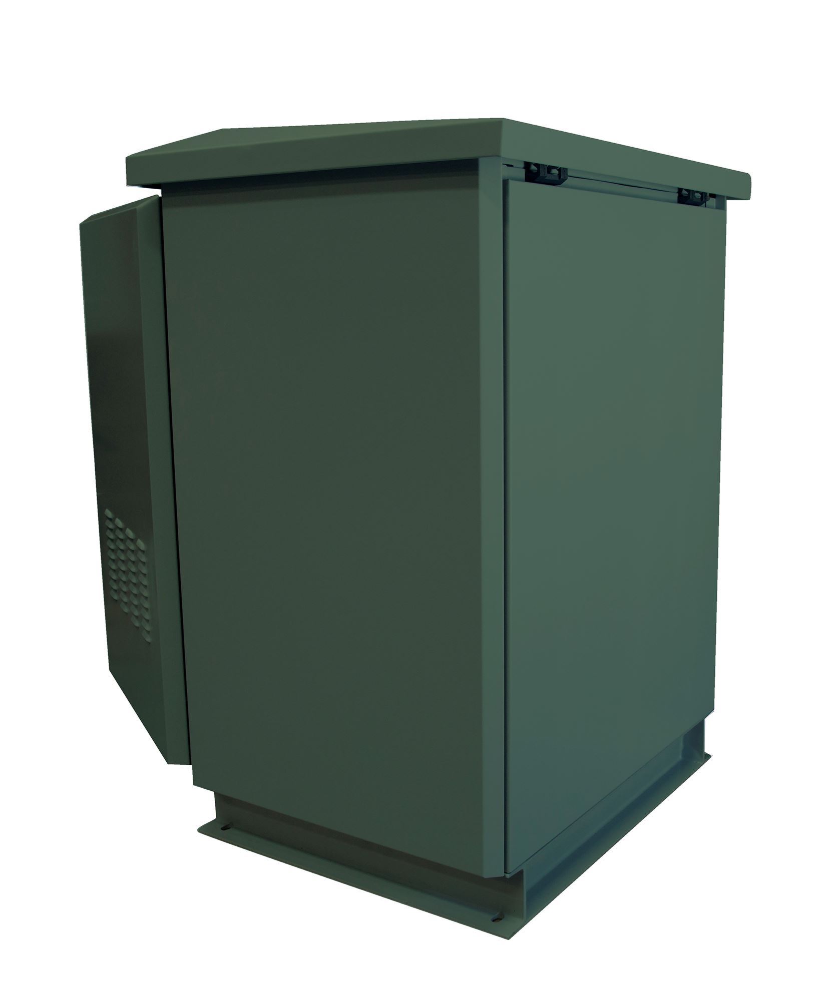 • Cabinet design allows natural wind cooling through filtered vents on the front door and venting under the lip of rain hood