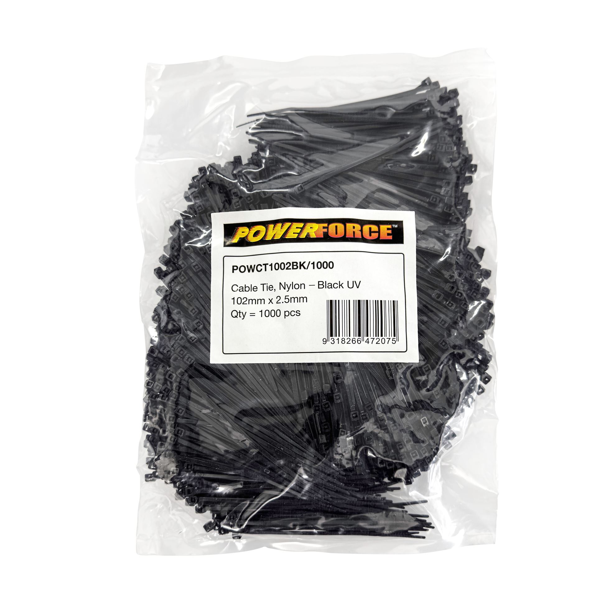 2.5 x 102mm Black UV Cable Ties Pack of 1000 8kgs Tensile Strength