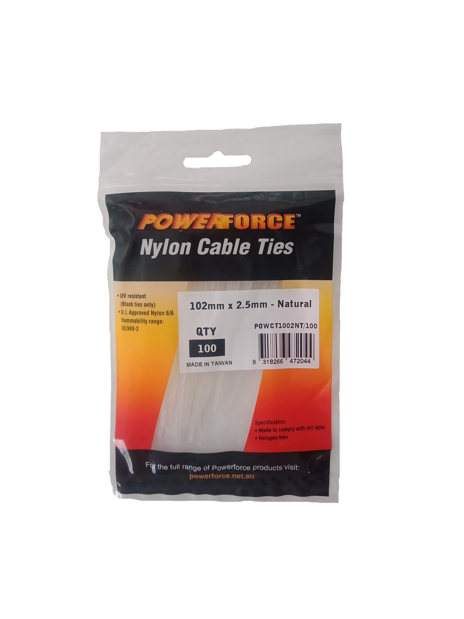 2.5 x 102mm Natural Cable Ties Pack of 100 8kgs Tensile Strength