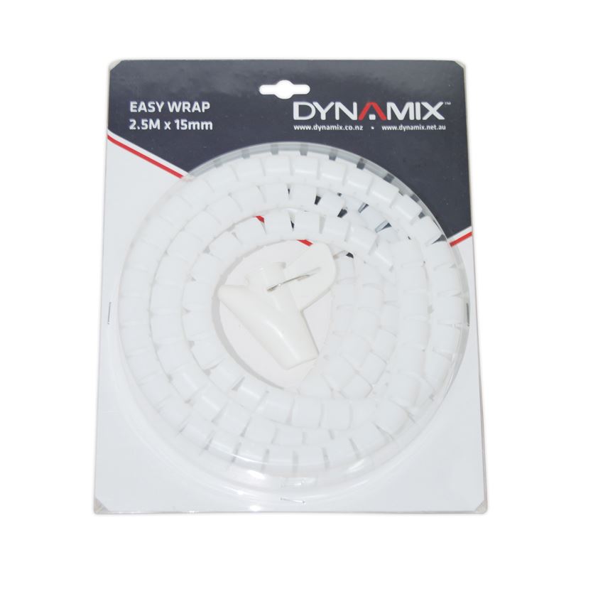 DYNAMIX 2.5mx15mm Easy Wrap - Cable Management Solution, Blister Retail Packaging, Colour White
