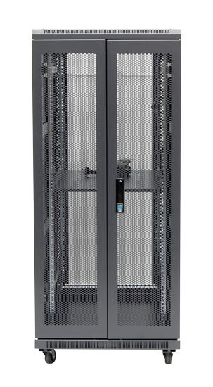 Our DYNAMIX SR series network server cabinets are an ideal solution to protect sensitive electronic networking equipment such as your server, network and telecommunications equipment in a sturdy, stable and mobile rack cabinet constructed from highly durable heavy-gauge steel. A tempered tinted glass front door ensures easy viewing and monitoring of equipment readouts while dual rear mesh doors provide additional air circulation and venting. Fully adjustable mounting rails and square mounting holes can accommodate various depth rack equipment. The DYNAMIX server cabinets are supplied standard with accessories including pre-installed fixed shelves, 2.5” heavy duty caster wheels & levelling feet, locking system, grounding pins, earthing wires, removable side panels, 4x cooling fans, and 6-way PDU (27RU and above). The cabinets are available in a wide variety of sizes from 12RU to 45RU.