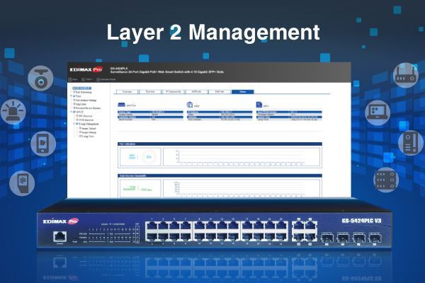 - Guaranteed PoE long distance to 200m • Power back feed protection to avoid damaging the PoE ports • IP Surveillance VLAN & Voice VLAN to enhance video & voice quality