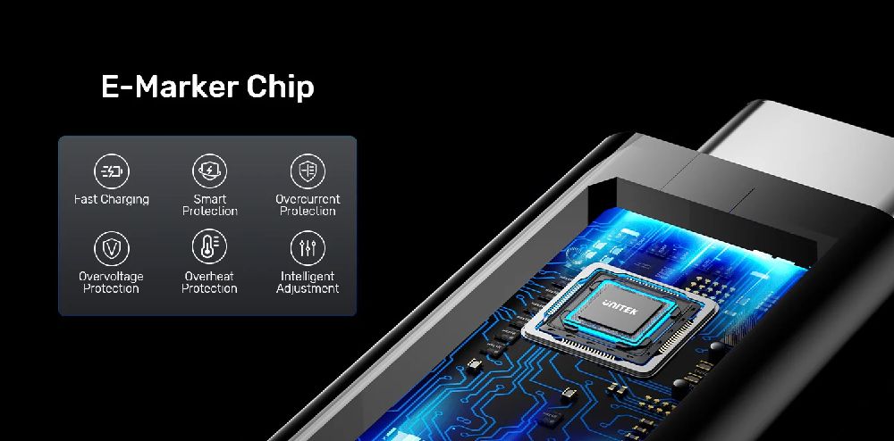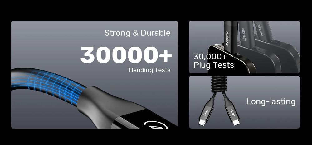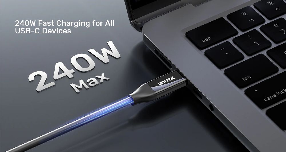 UNITEK USB4 USB-C Cable supports USB-C Power Delivery at a maximum of 240W (48V/5A). Charge both high-consumption laptops and compact smartphones using the same cable and a PD power adapter, thanks to programmable smart auto-detection. (Note: Charging speed may depend on the host device’s capability.
