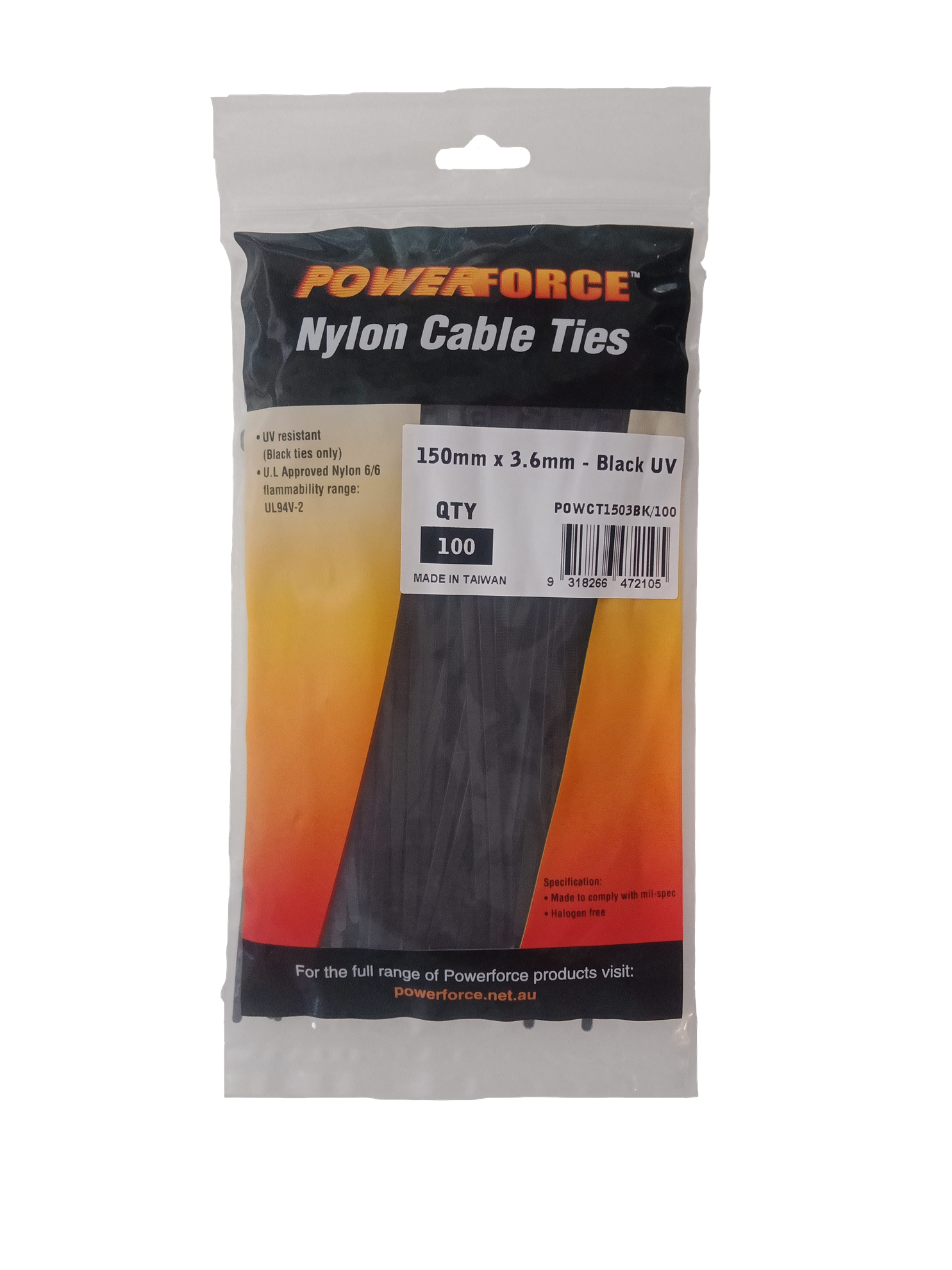 3.6 x 150mm Black UV Cable Ties Pack of 100 18kgs Tensile Strength