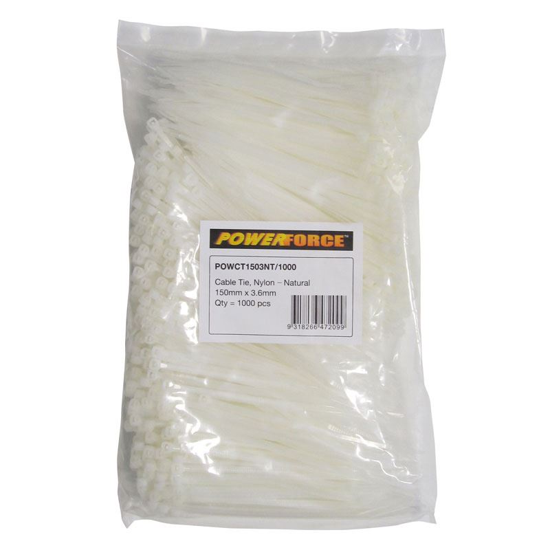 3.6 x 150mm Natural Cable Ties Pack of 1000 18kgs Tensile Strength