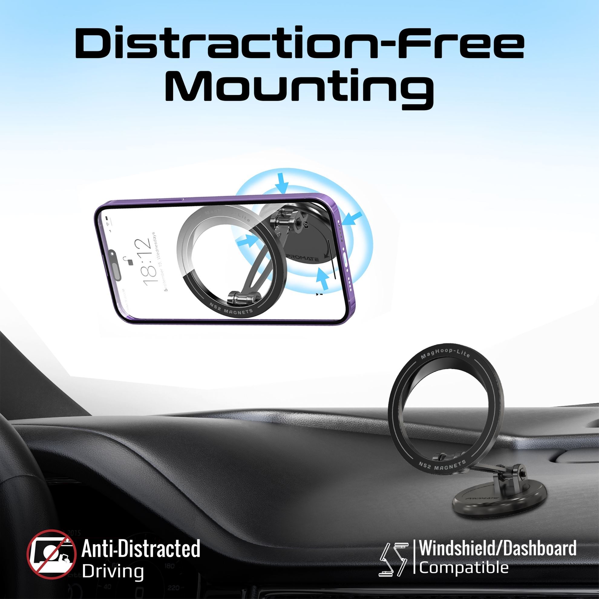 Meet MagHoop-Lite, our innovative Magnetic Car Mount - a pinnacle of sophistication. Meticulously crafted from premium zinc alloy, this compact design offers a 360° bottom rotation, reinforced by robust N52 magnets for unparalleled strength and reliability. Unbox convenience with one car mount and two metal ring plates included enhancing your driving experience with cutting-edge technology and sleek design