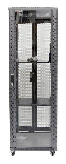 Our DYNAMIX SR series network server cabinets are an ideal solution to protect sensitive electronic networking equipment such as your server, network and telecommunications equipment in a sturdy, stable and mobile rack cabinet constructed from highly durable heavy-gauge steel. A tempered tinted glass front door ensures easy viewing and monitoring of equipment readouts while dual rear mesh doors provide additional air circulation and venting. Fully adjustable mounting rails and square mounting holes can accommodate various depth rack equipment. The DYNAMIX server cabinets are supplied standard with accessories including pre-installed fixed shelves, 2.5” heavy duty caster wheels & levelling feet, locking system, grounding pins, earthing wires, removable side panels, 4x cooling fans, and 6-way PDU (27RU and above). The cabinets are available in a wide variety of sizes from 12RU to 45RU