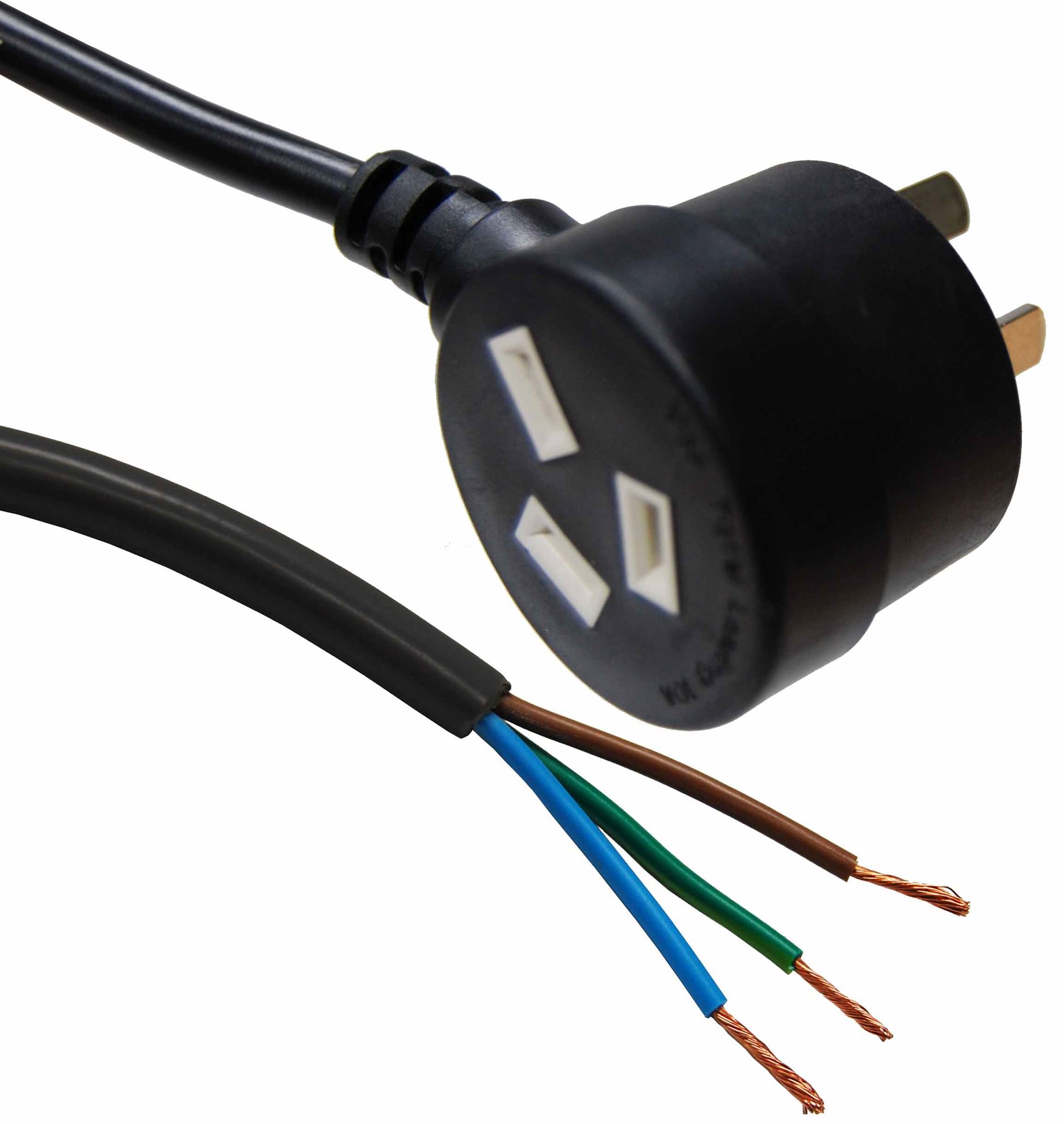 3M 3-Pin Tapon Plug to Bare End 3 Core 1mm Cable Black SAA Approved