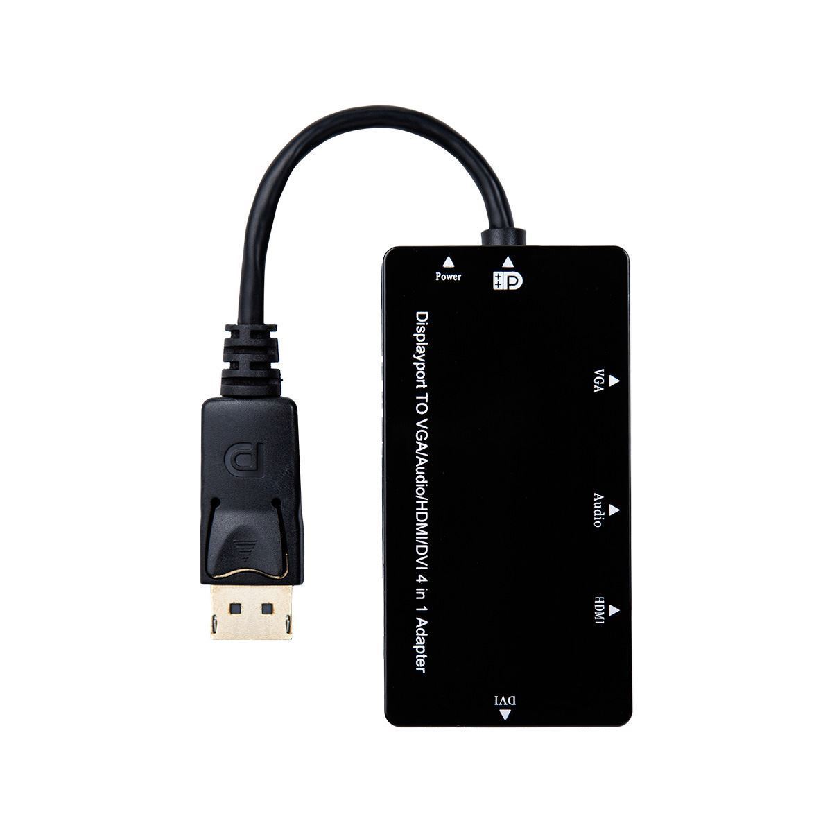 The DYNAMIX DisplayPort 4-in-1 Adapter offers a better HD visual & audio experience. Connecting a DisplayPort compatible computer to an HDTV, monitor, or projector with HDMI/DVI/VGAT adapter. The DisplayPort to HDMI/VGA/DVI/AUDIO can duplicate the input up to 2 displays simultaneously. The transmission is NOT Bi-Directional.