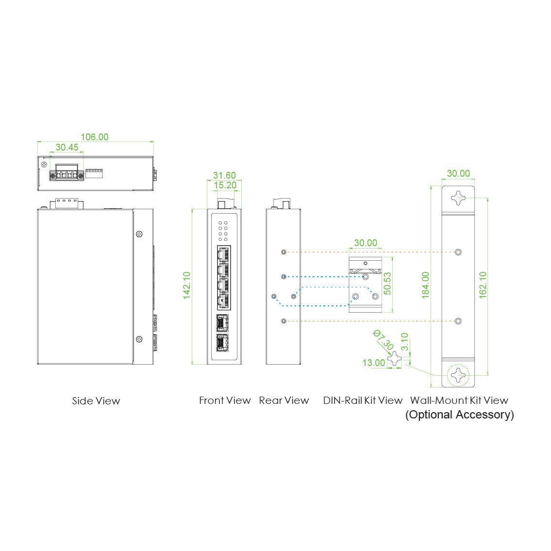 - DIN Rail mounting or wall mounting