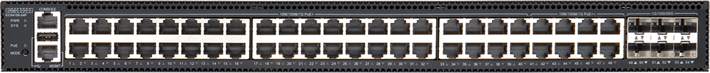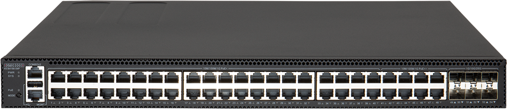 The Edgecore ECS4150-28T switch is a Gigabit Ethernet access switch with four 10G SFP+ uplinks. The switch is ideal for Internet Service Providers (ISPs) and Multiple System Operators (MSOs) wanting to provide home users with triple-play services with up to a Gigabit of bandwidth. This switch is also positioned as Cloud Edge access switch to connect IOT and other devices in Enterprises and SMB deployments. It is also an ideal Gigabit access switch for SMB, enterprise, and campus networks. The ECS4150-28P is a PoE switch which can provide up to 30 Watts to Power Devices such as Wireless Access Point, VoIP Phone, Surveillance camera, IoT devices etc over Cat 5 UTP cable eliminate the need for individual power source. The ECS4150-28T/ECS4150-28P is packed with features that bring high availability, comprehensive security, robust multicast control, and advance QoS to the network edge, while maintaining simple management. The switch also supports the most advance IPv6 management, IPv6 security, and IPv6 multicast control in accordance with the growth of IPv6 deployment.