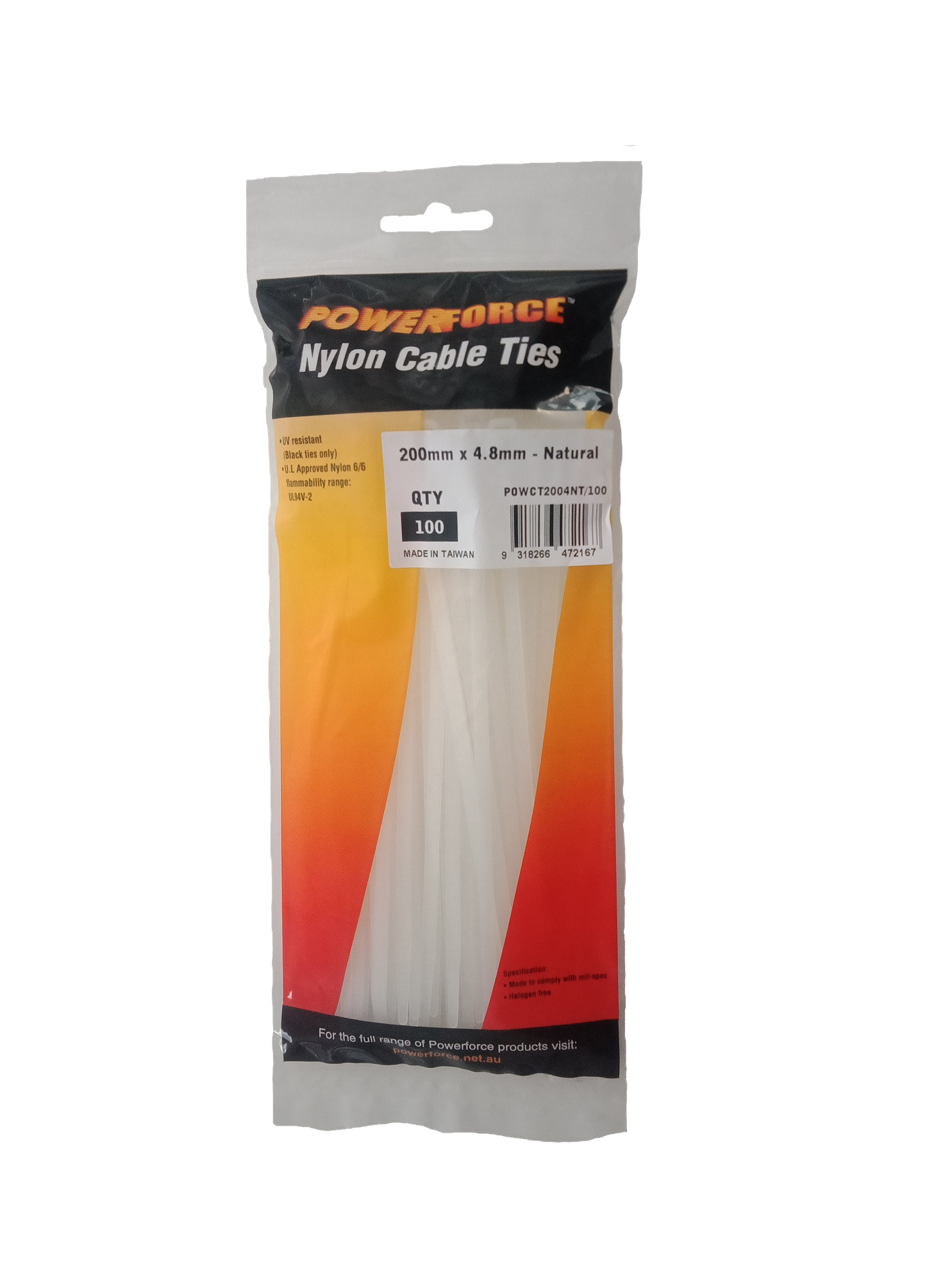 4.8 x 200mm Natural Cable Ties Pack of 100 22kgs Tensile Strength