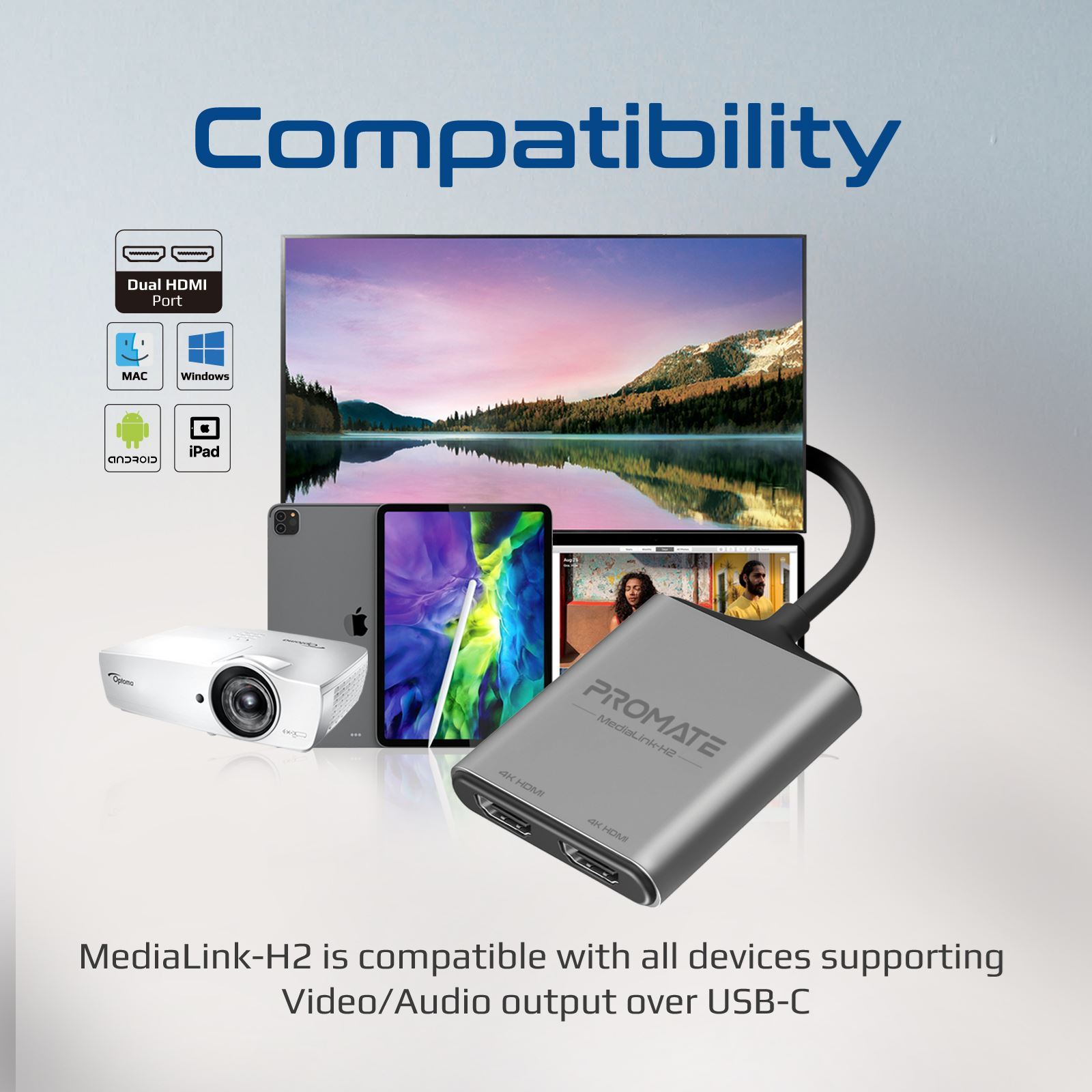- Compatibility: MediaLink-H2 is compatible with all devices supporting Video/Audio output over USB-C