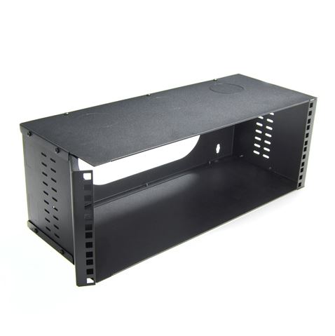 DYNAMIX 4U 200mm Deep 19'' Fully Enclosed Hinged Wall Mount Bracket. Includes Lid & Base Panels. Incorporates Side Venting & Rear Entry Plus Knock Outs on Top, Bottom & Sides. Black Colour