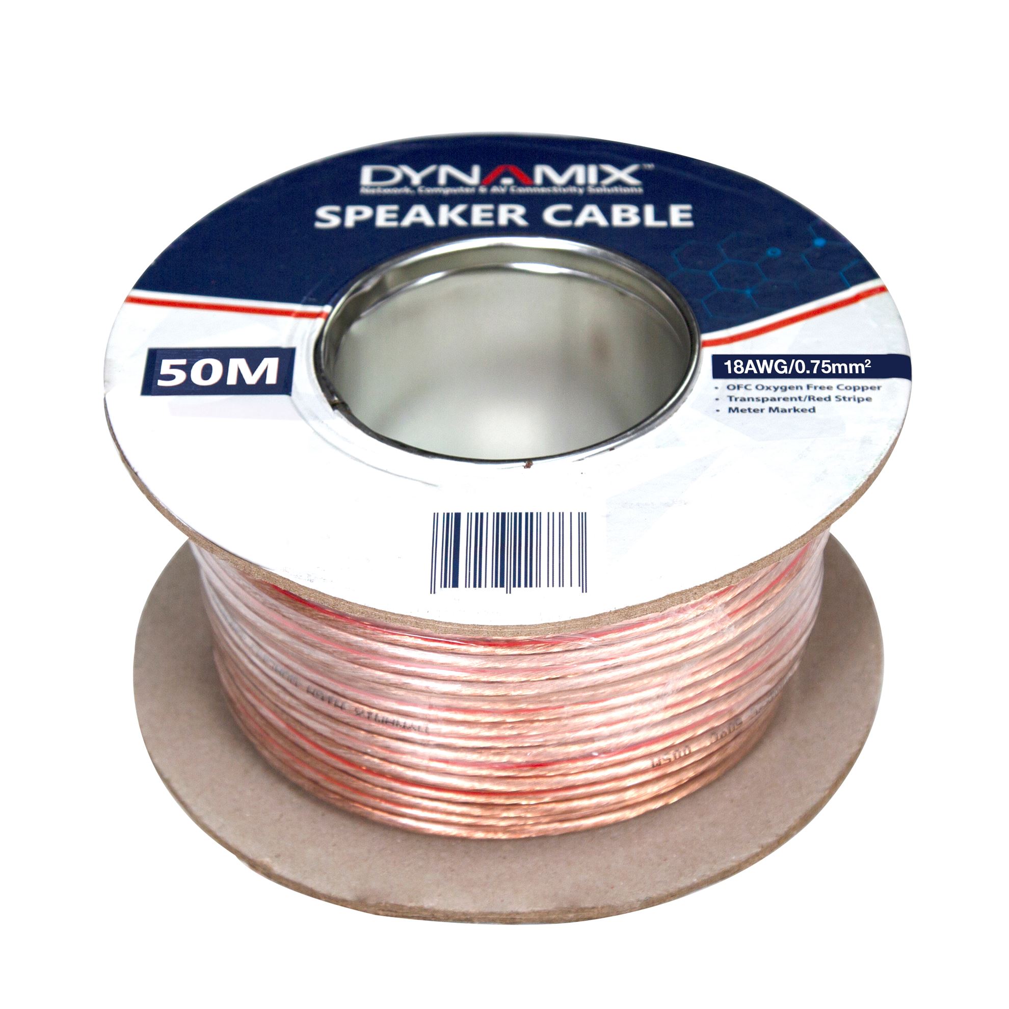 50m 18AWG PVC Speaker Cable Bare Copper Transparent Colour w/ Red Stripe Meter Marked
