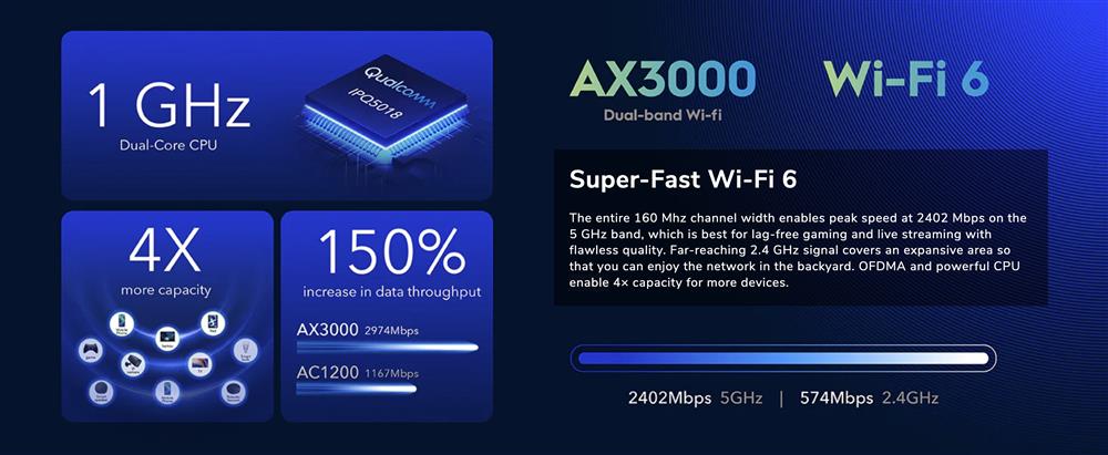 - AX3000 Dual-Band Wi-Fi 6