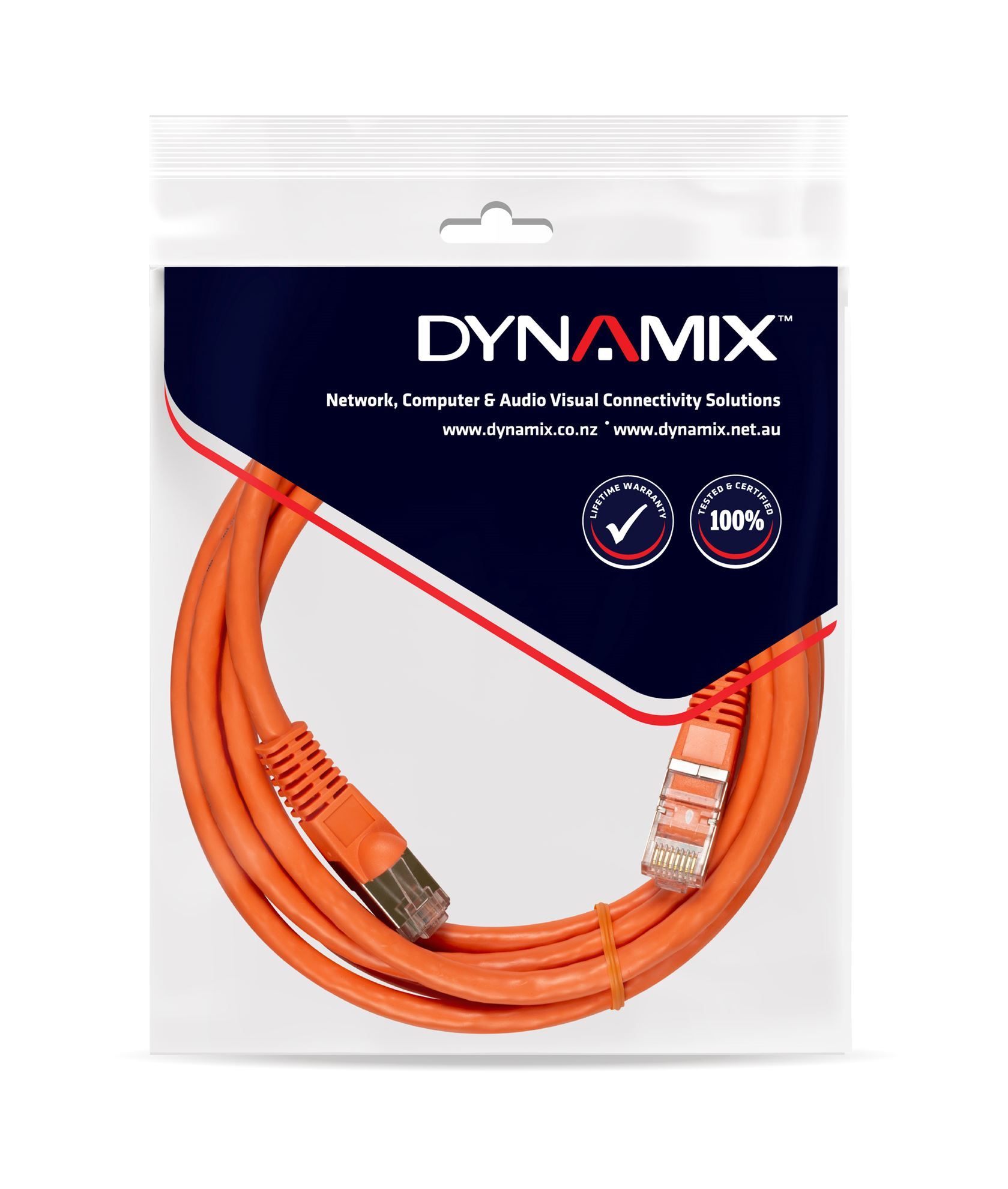 DYNAMIX 5m Cat6A S/FTP Orange Shielded 10G Patch Lead. 26AWG (Cat6 Augmented) 500MHz with Gold Plate Connectors.
