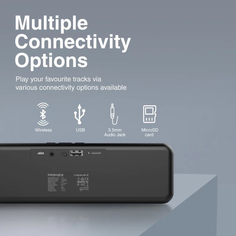 Enjoy crystal clear sound quality in a beautiful design with Capsule-2. This compact 6-watt speaker delivers sound way beyond its size, with custom-designed drivers producing clear highs. Play your favourite tracks via various connectivity options available. The compact, lightweight design makes this speaker highly portable.