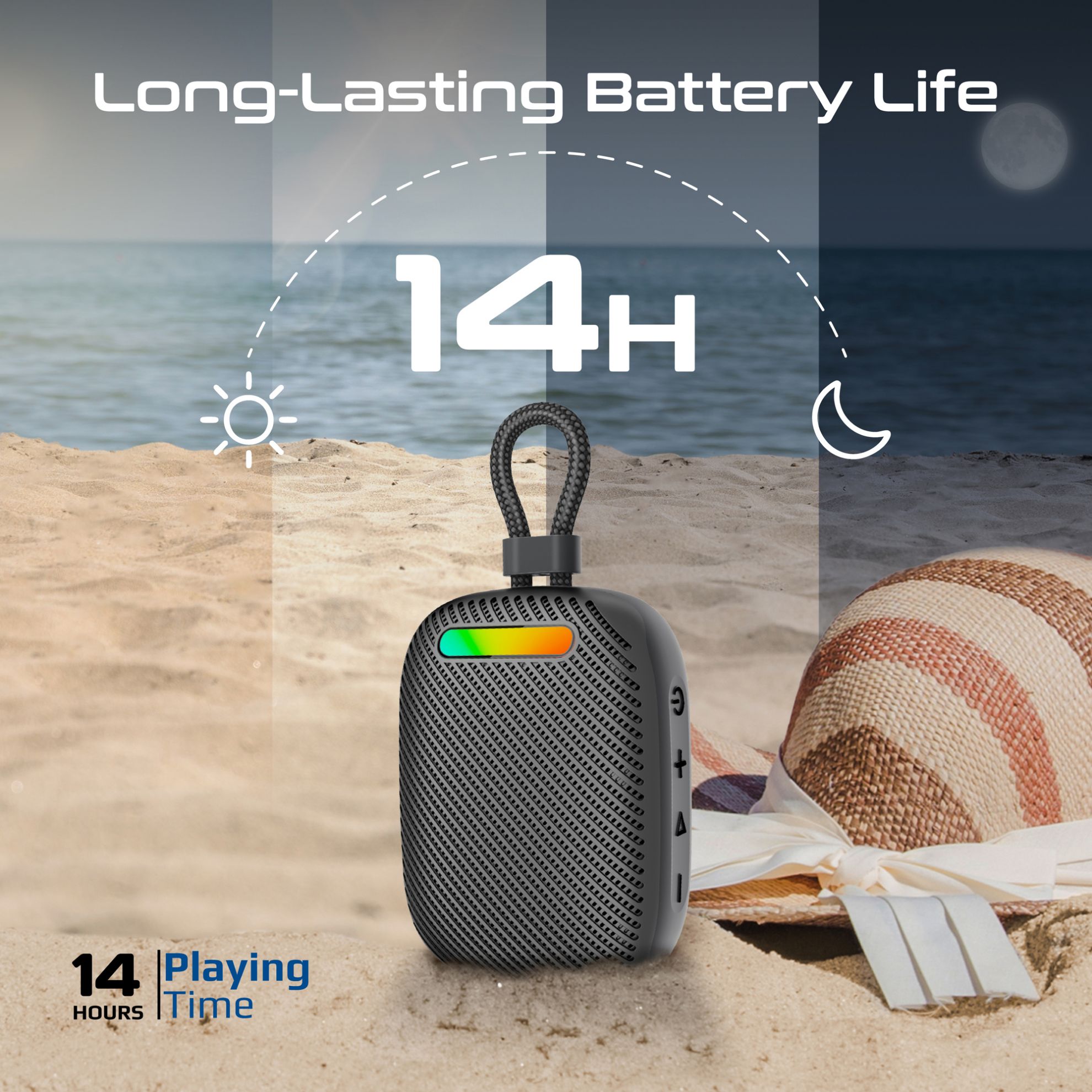 • Long-Lasting Battery Life: Built-in 1800mAh lithium-ion battery powers up to 14 hours of continuous playback and 500 hours of standby.