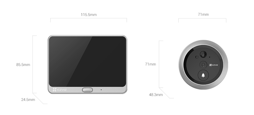 Peephole Doorbell: 71 x 71 x 48.3mm |