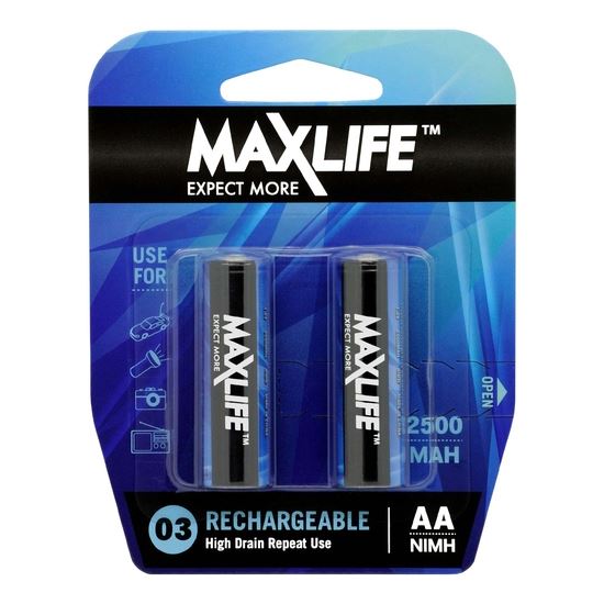 MAXLIFE AA Rechargeable Battery NIMH 2500mAh. 2Pk.